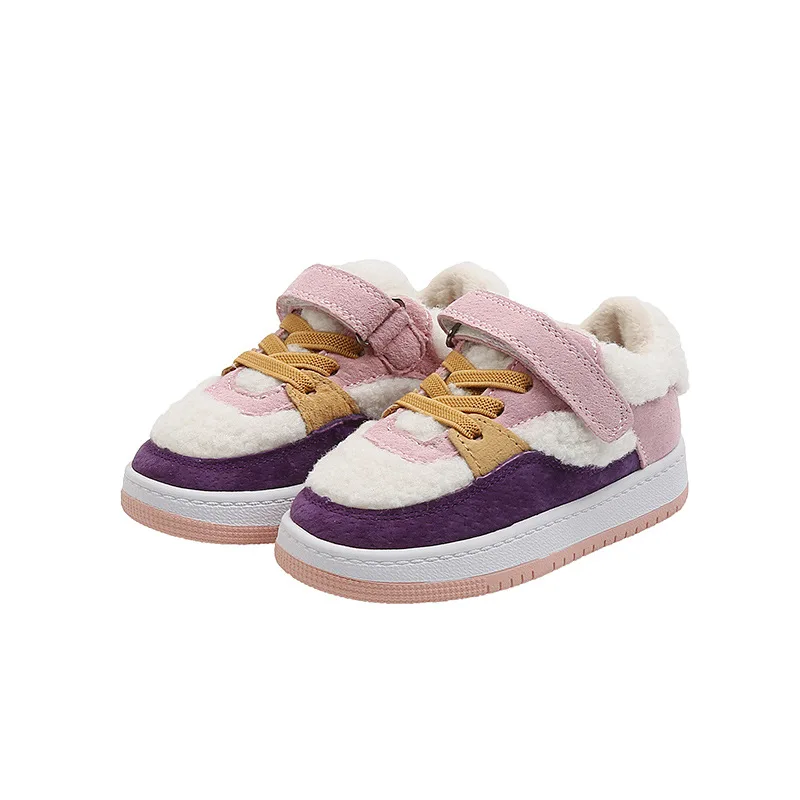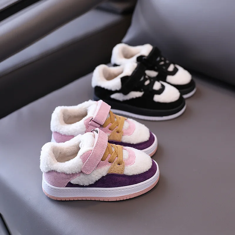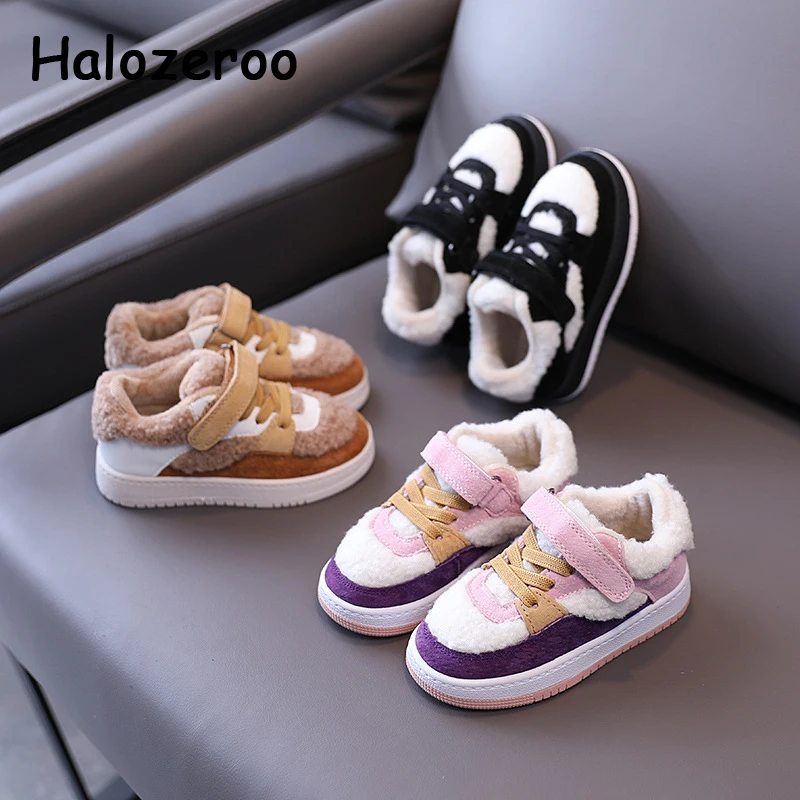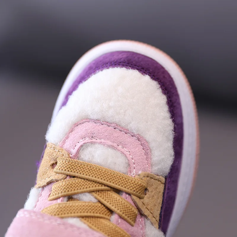 Зимние Детские повседневные кроссовки; Детские меховые спортивные кроссовки; Обувь из натуральной кожи для маленьких девочек; Брендовые кроссовки для маленьких мальчиков