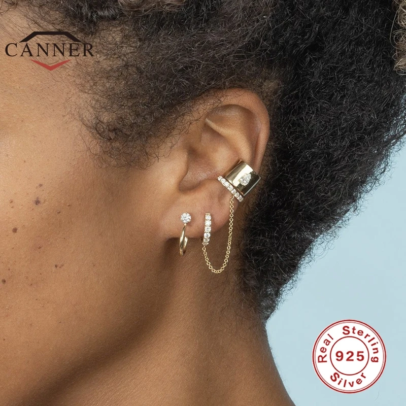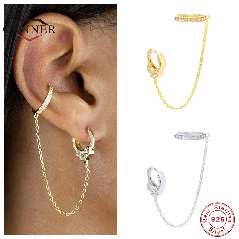 Женские серьги-кольца CANNER из настоящего стерлингового серебра 925 пробы, серьги в стиле пирсинга, цепочка с бриллиантами и серьга в виде кольца, ювелирные изделия