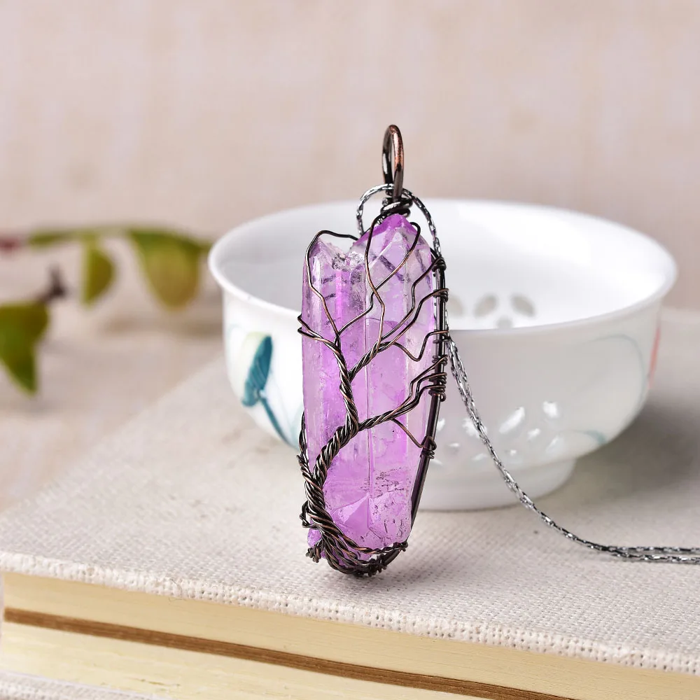 Подвеска с натуральным аметистом Древо жизни для мужчин и женщин, о...