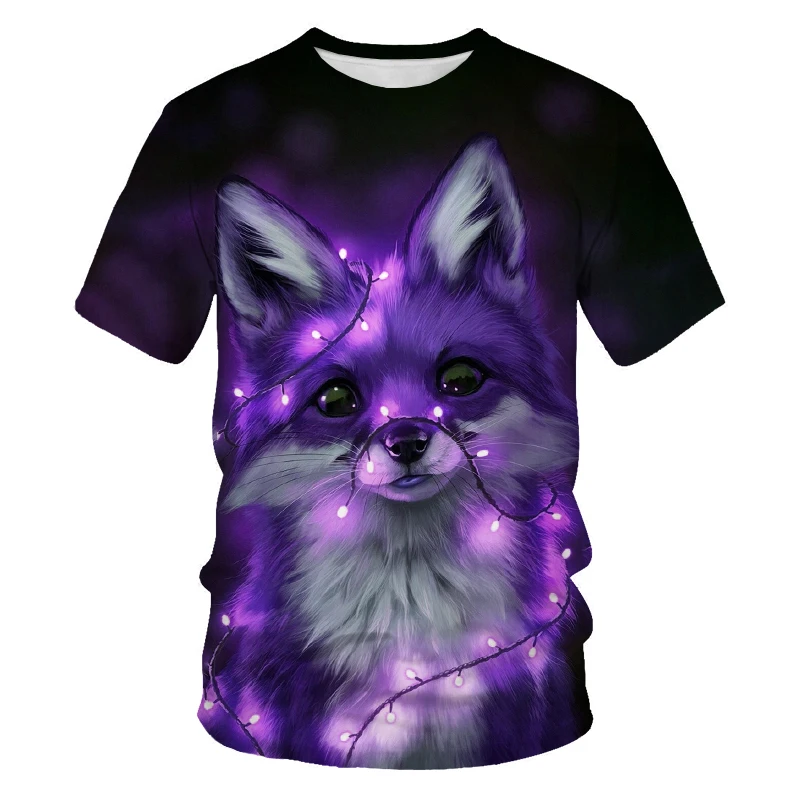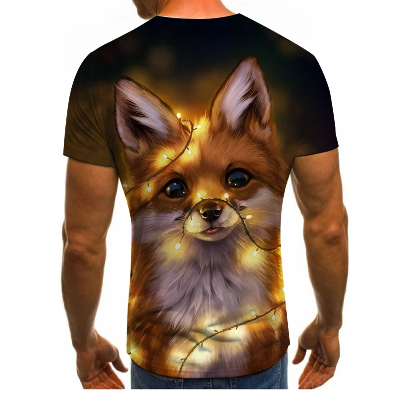 Модная Летняя мужская футболка с 3D принтом лисы и волка с коротким рукавом Уличная одежда в стиле хип-хоп Свободная Повседневная рубашка с круглым вырезом