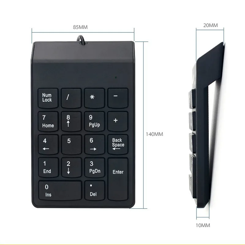 Тонкий и компактный дизайн: 18-клавишная Проводная цифровая клавиатура, мини и портативный.