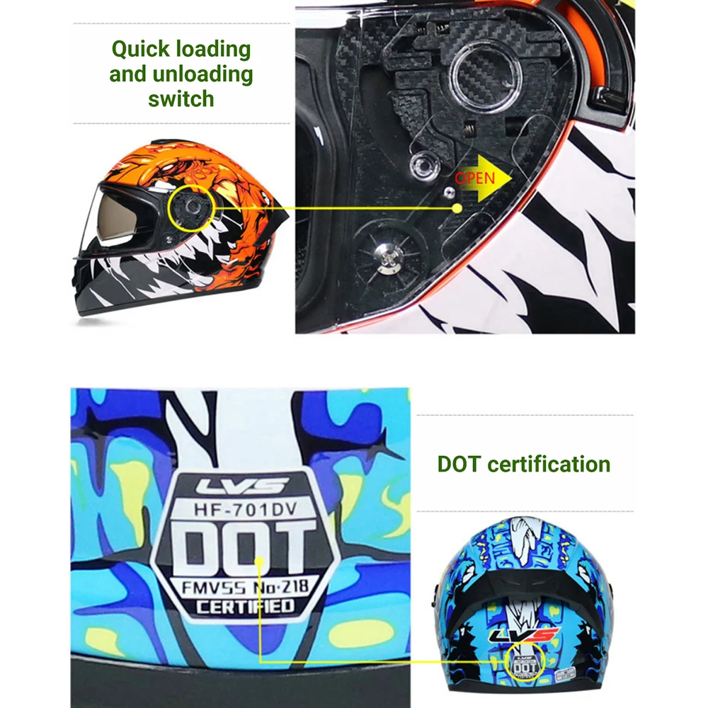 Мотоциклетный шлем LVS для мужчин и женщин, каска для мотокросса, гоночный шлем, закрытое лицо, для езды по бездорожью, сертификация DOT