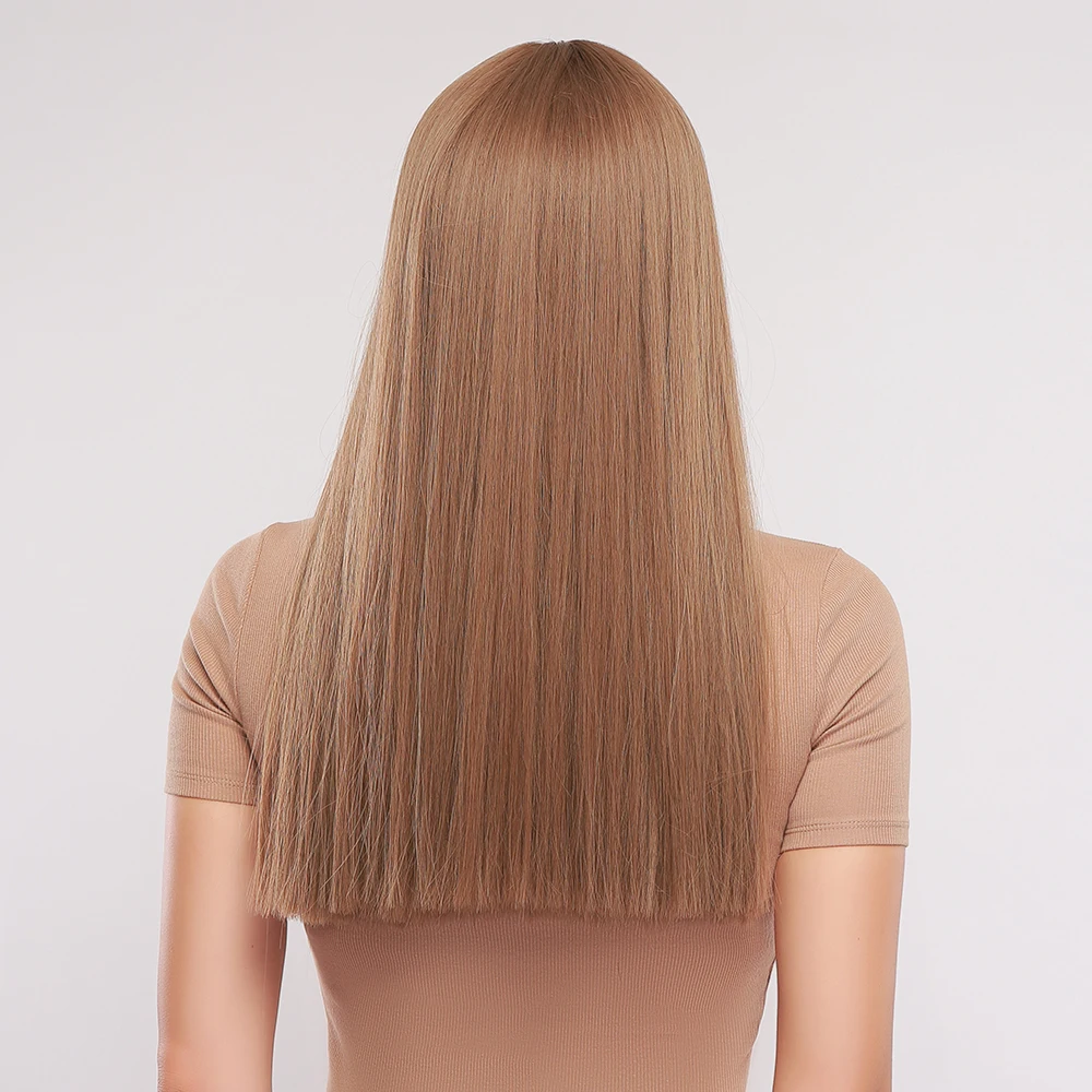 Парик с челкой мужской, термостойкий, синтетический, длинный, прямой, коричневый, с натуральными мягкими волосами для косплея