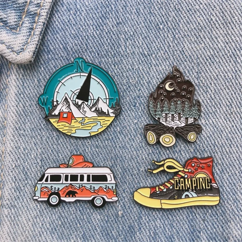 Креативная Веселая эмалированная брошь для путешествий на открытом воздухе в виде горного пика обуви костра автобуса эмалированная брошь значок для одежды сумки ювелирное изделие подарок для друзей