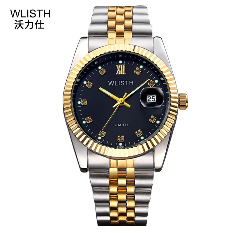 Мужские и женские кварцевые часы Wlisth, золотые часы, стальные вод...