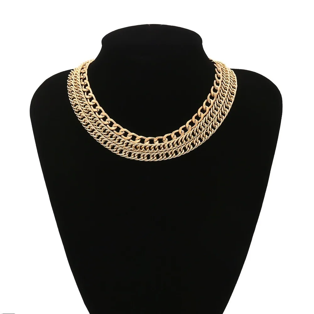 Женское Двухслойное ожерелье в стиле панк с золотыми алюминиевыми цепочками, массивное звеньевое ожерелье с воротником, массивное ювелирное изделие в стиле хип-хоп, новое ожерелье 2020