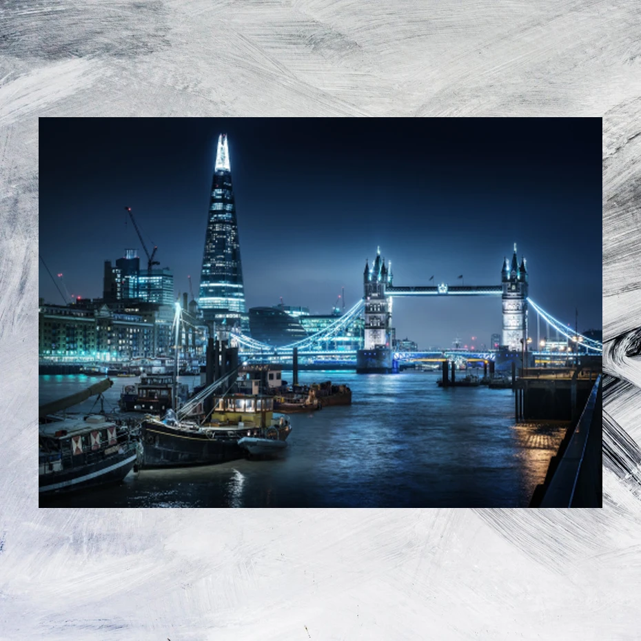 Черно-белый город красивый ночной вид большой холст картина плакат ...