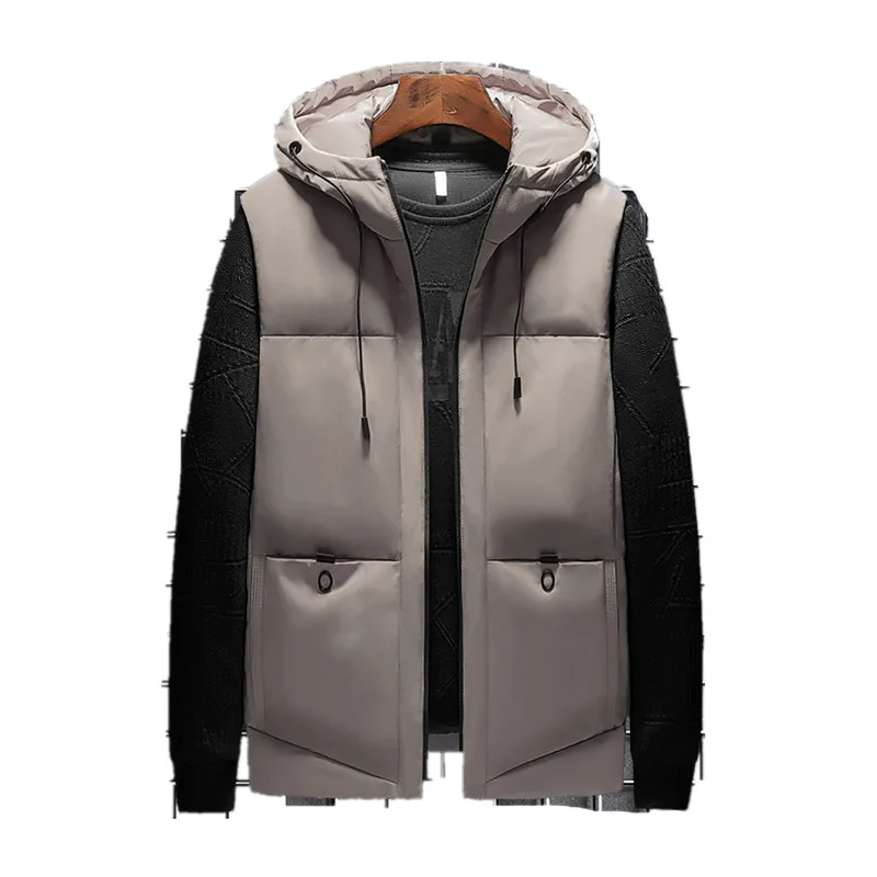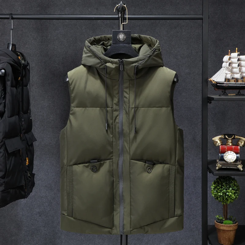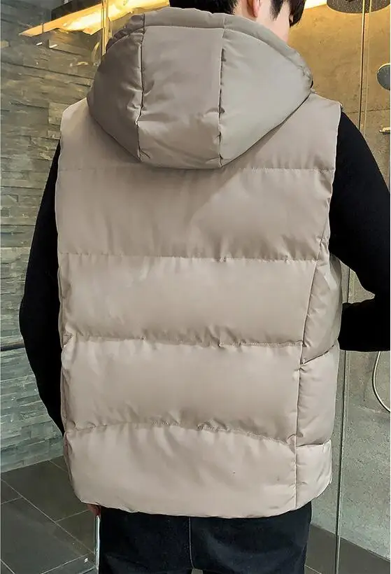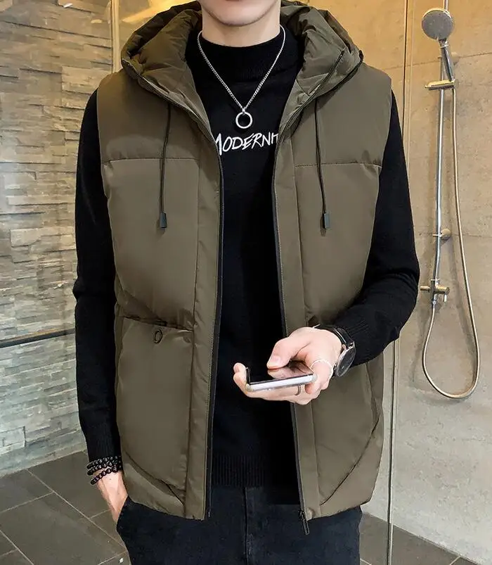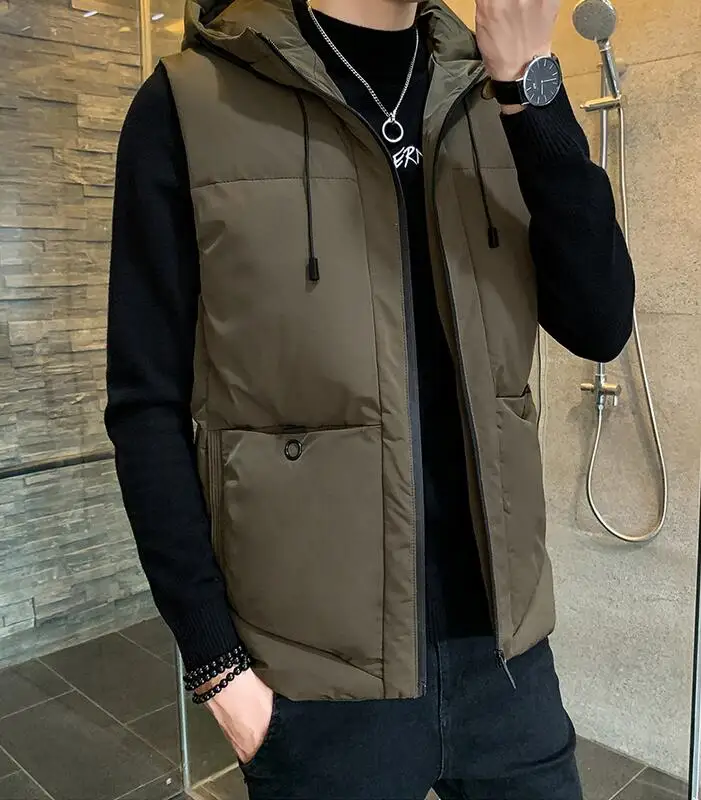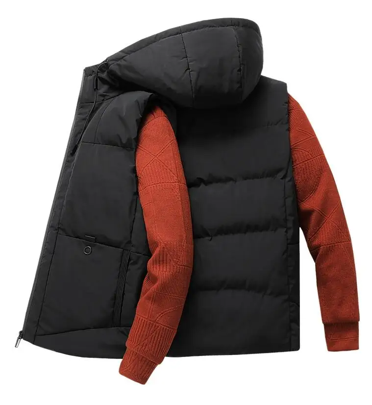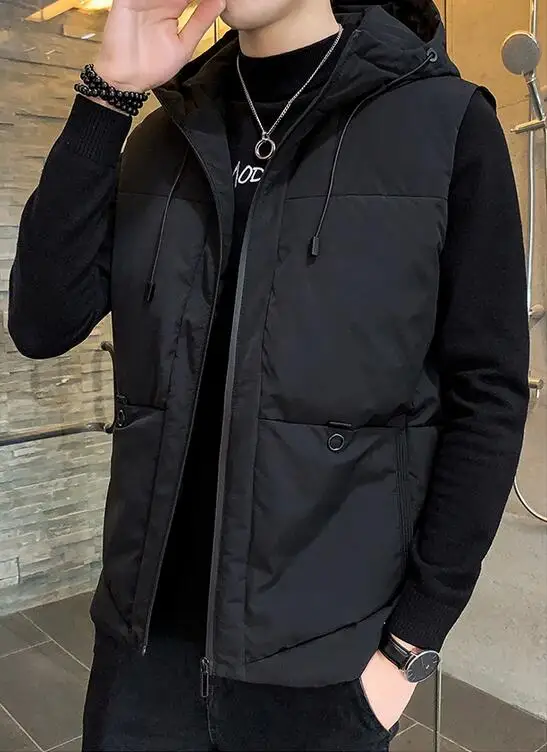 Жилет мужской, без рукавов, с капюшоном, однотонный, Повседневный, зимний