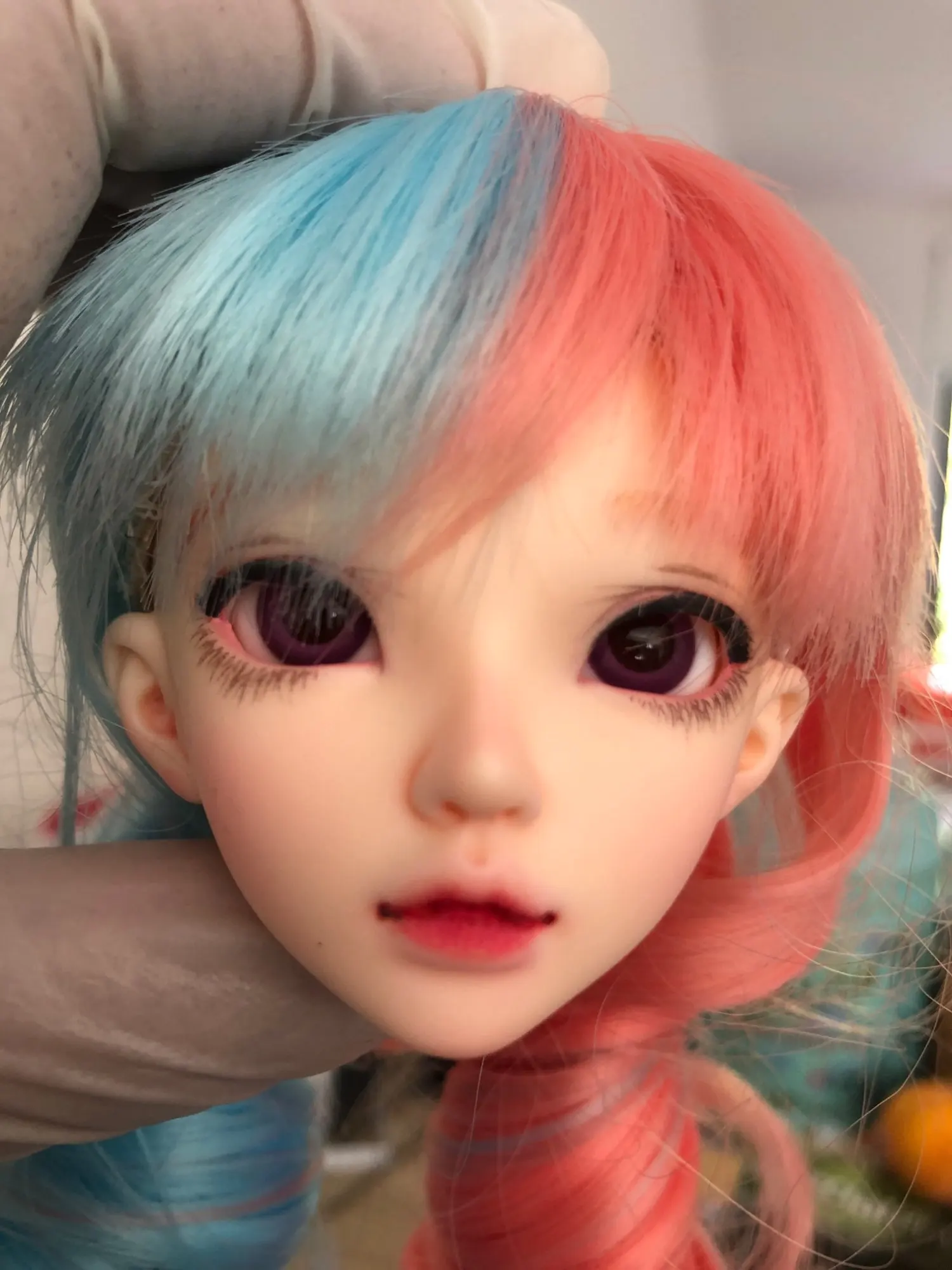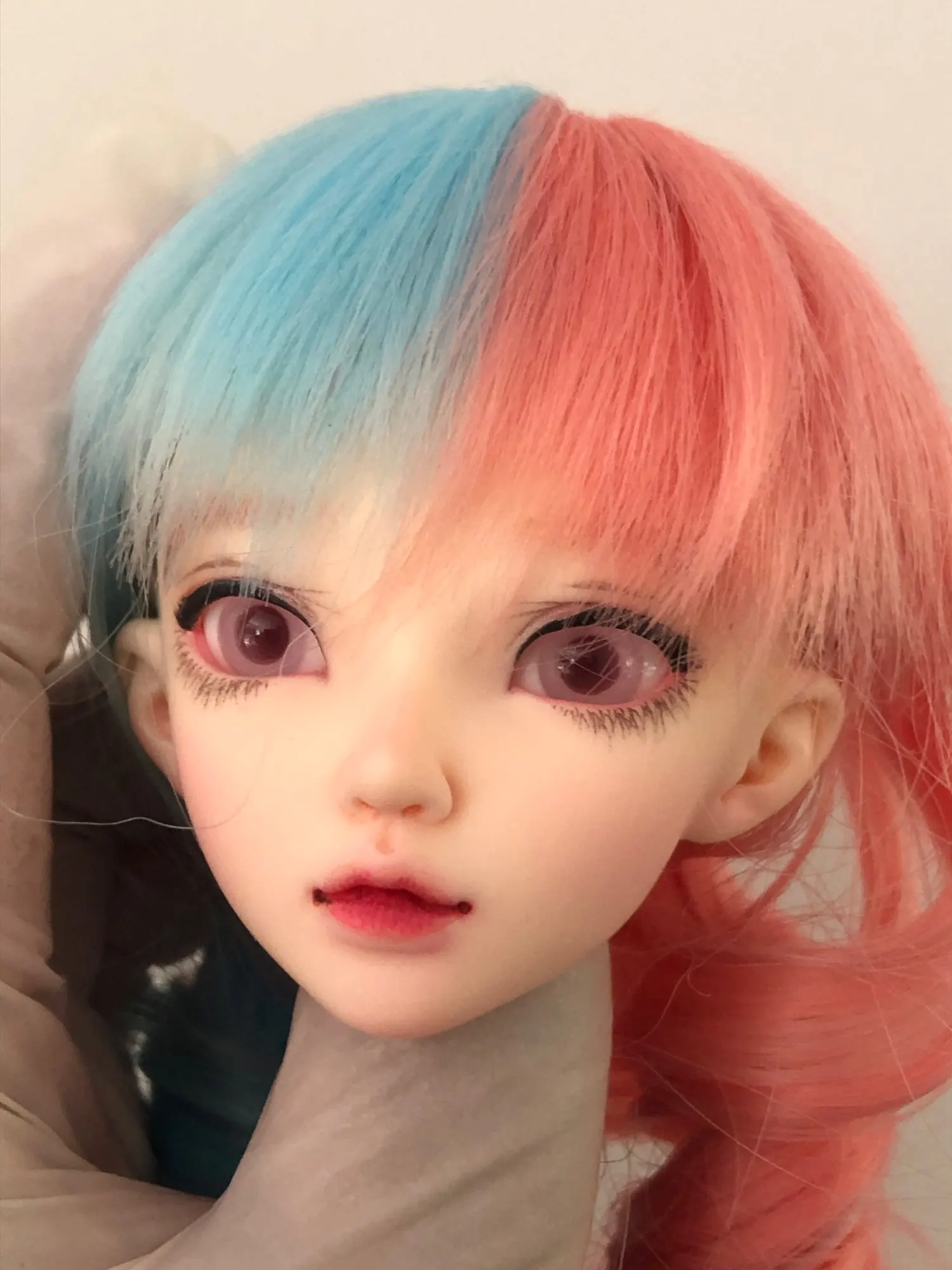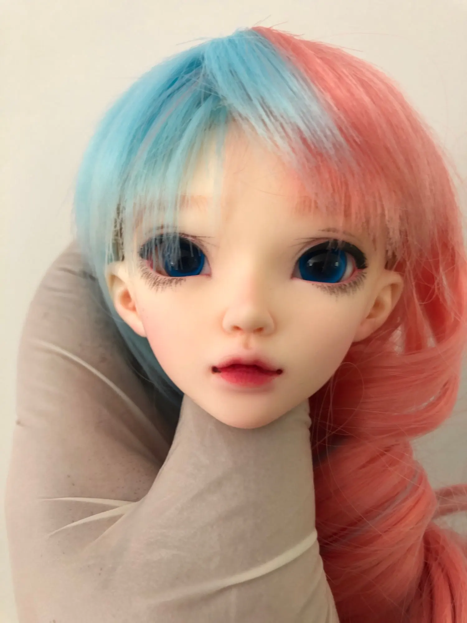 Красивые глаза, пара соответствует заявленному размеру, но чтобы уловить хоть малейшую синеву зрачка - надо очень постараться и светить прямо в глаз. В жизни при обычном освещении совсем не так выглядит - просто розовые глазки.