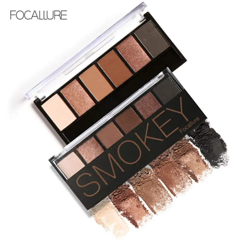 Палетка дымчатые тени Focallure, шелковистые гладкие тени для век, 6 цветов, водостойкие мерцающие блестящие тени для век, набор для макияжа
