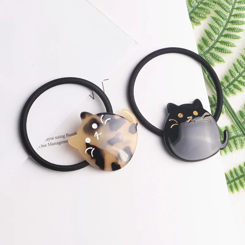 Резинки для волос женские, корейские, акриловые, с мультяшным котом, эластичные, кольцевые повязки на голову