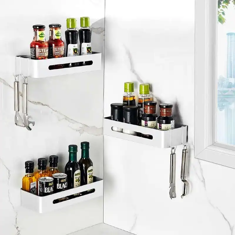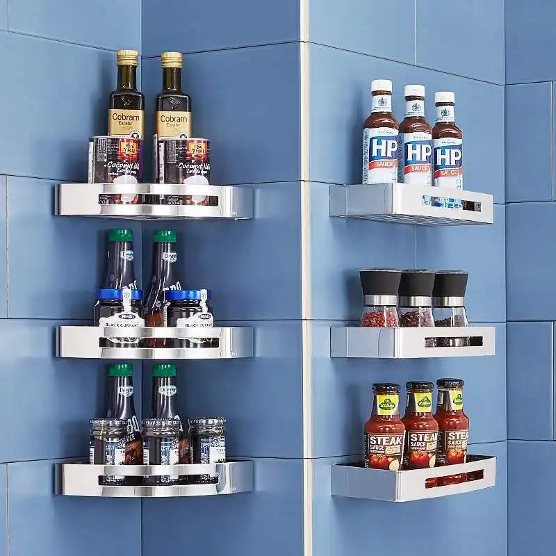 Кухонная настенная полка для органайзер для хранения на полке, полка для специй, полка для хранения, полка для кухни, ванной, без гвоздей, алюминий