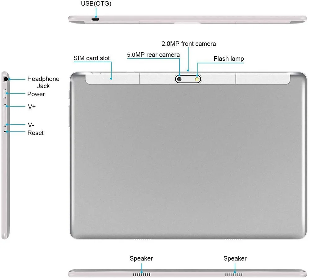 Восьмиядерный процессор+6 ГБ ОЗУ 32 ГБ eMMC память+Новая система Android 9,0 Pie+Сеть Wi-Fi 4G LTE+10-дюймовый экран 1280*800 IPS+Порт USB Type C