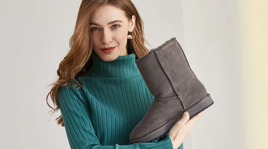 Женские замшевые зимние сапоги из натуральной овечьей кожи снаружи и натуральной овечьей шерсти внутри