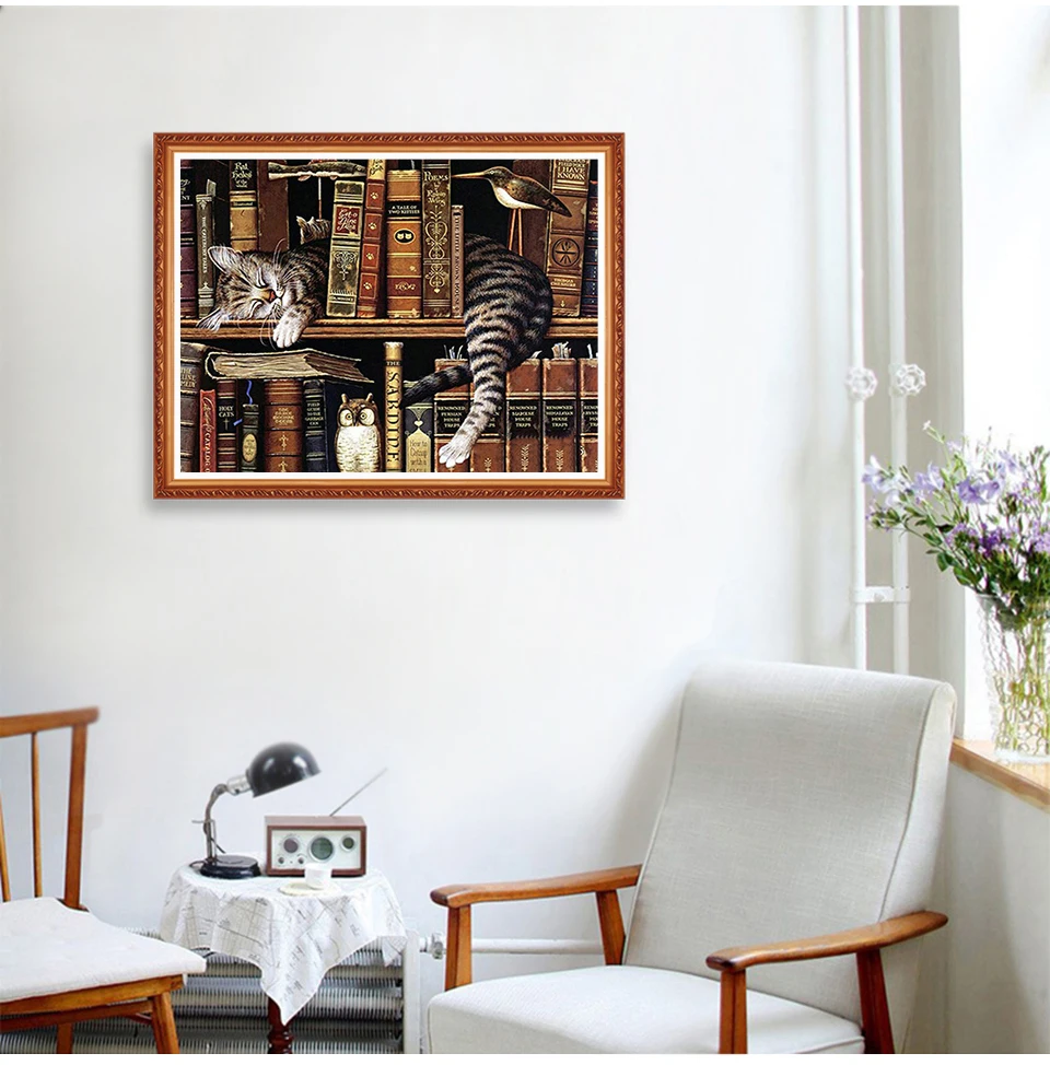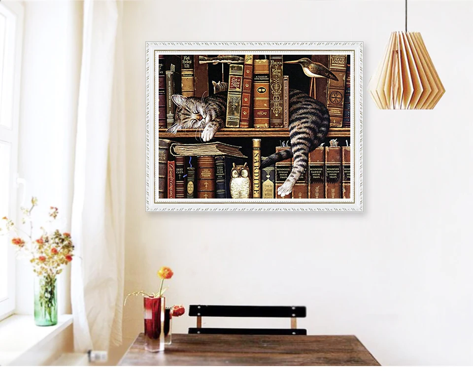 Алмазная живопись сделай сам, мозаика с животными, вышивка крестиком, кот 5D, полное квадратноеКруглое сверло, украшение для дома, алмазная книга-вышивка