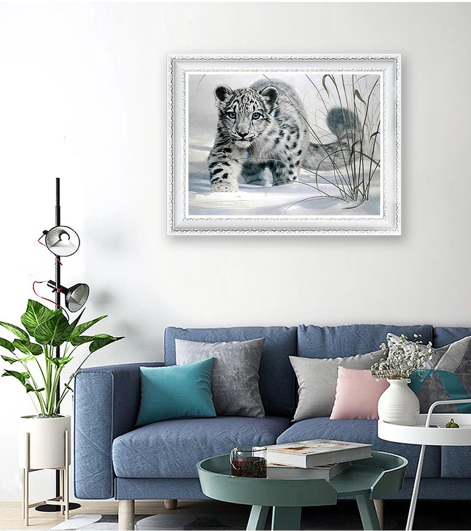 Полностью квадратнаякруглая Алмазная вышивка животных DIY Алмазная картина Снежная леопардовая мозаика крестиком украшение дома