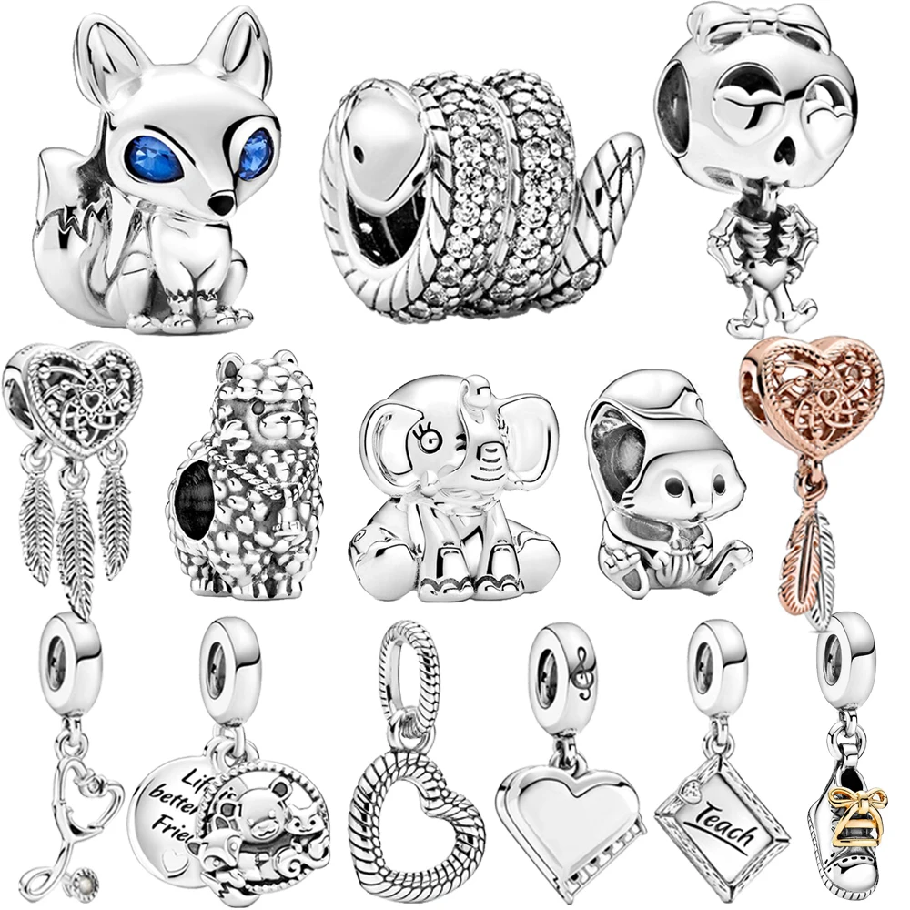 Новое поступление осени 2021, бусины-шармы из серебра 925 пробы в виде змеи, альпаки, лисы, белки, подходят для оригинального браслета Pandora, серебряные украшения