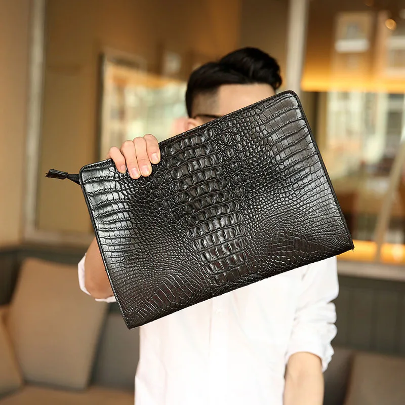 Роскошный мужской клатч с узором под кожу крокодила, брендовая дизайнерская деловая сумка, портфель для iPad, Модный мягкий кожаный конверт, мужской кошелек