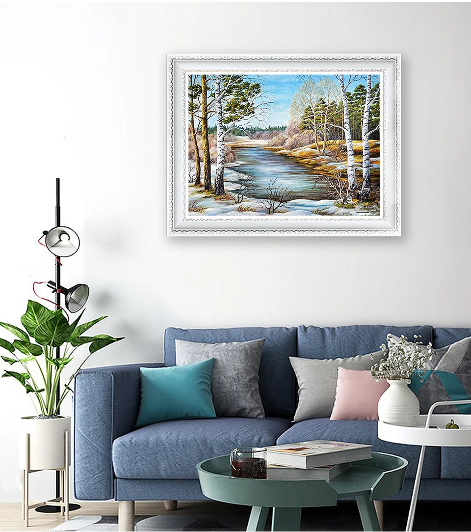 Алмазная вышивка зима лес камни в форме ромба Стразы 5D DIY Алмазная Живопись Вышивка крестом, мозаичный Декор для дома подарок