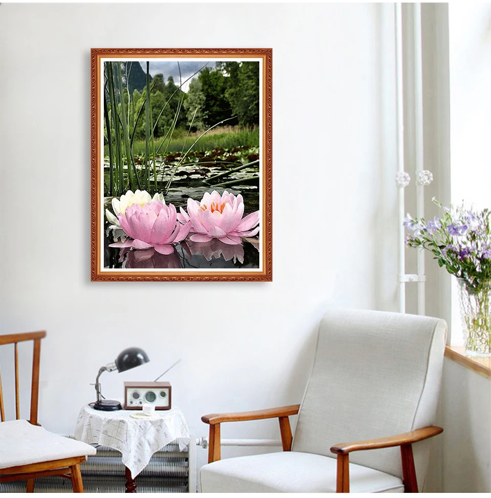 Алмазная вышивка цветок Лотос полноразмерный дисплей 5D сделай сам вышивка крестиком Стразы полноразмерная алмазная живопись Декор домашний подарок