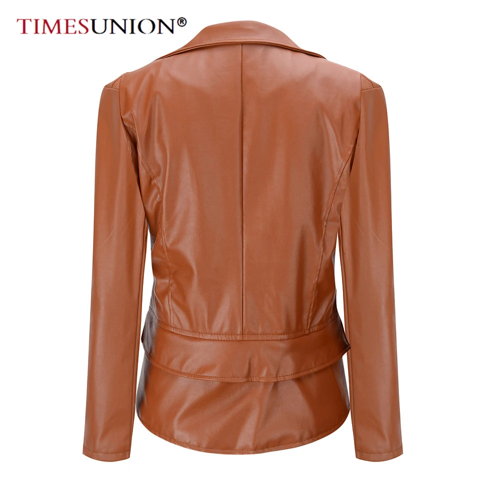 Женская куртка из искусственной кожи, Осеннее байкерское пальто с отложным воротником на молнии, уличная верхняя одежда, кожаная куртка для женщин 4XL