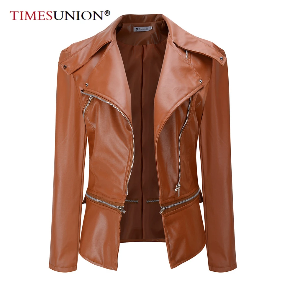Модная женская кожаная куртка на молнии, приталенные мотоциклетные ...