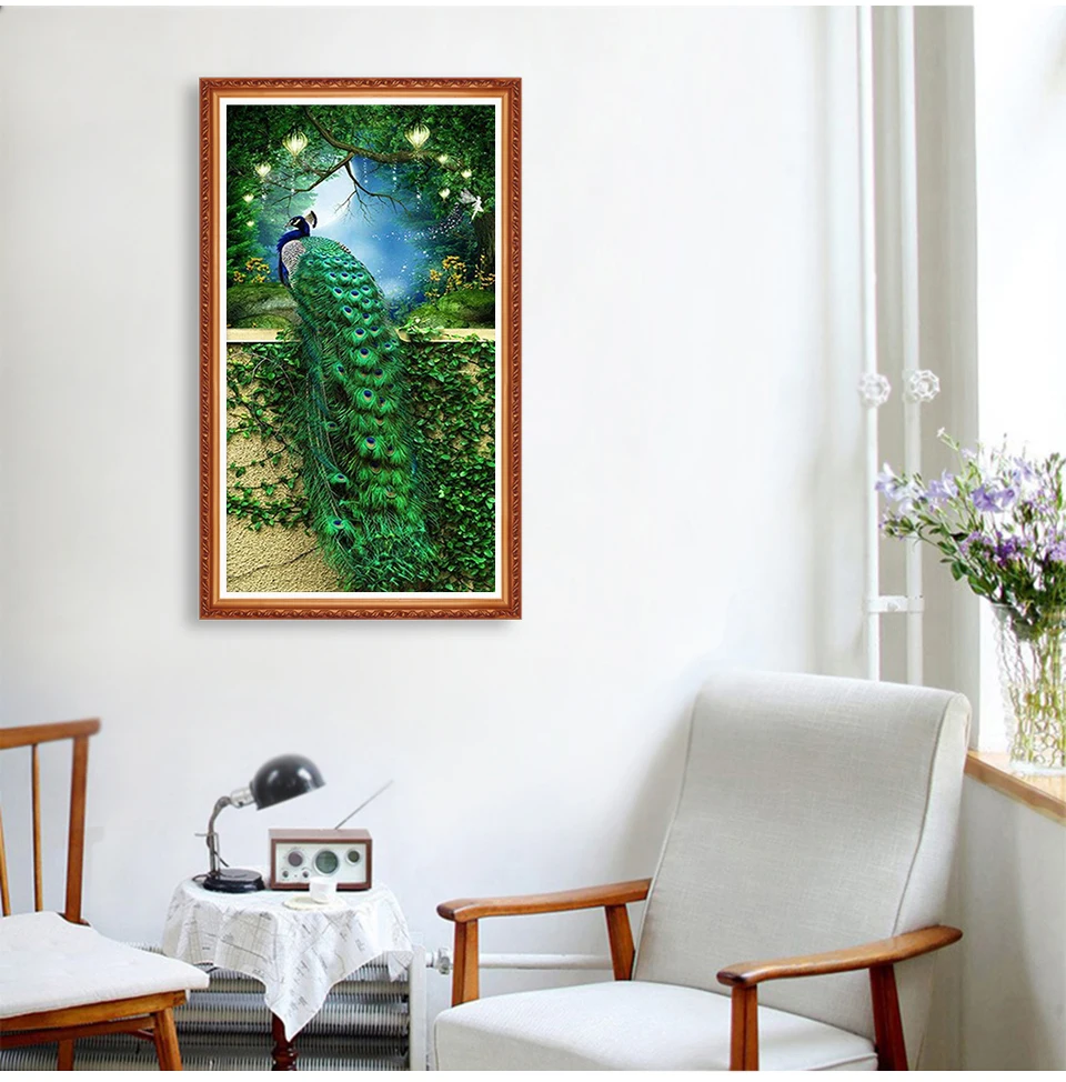 Картина для стразы, квадратная вышивка, павлин, украшение для дома, алмазные мозаичные животные