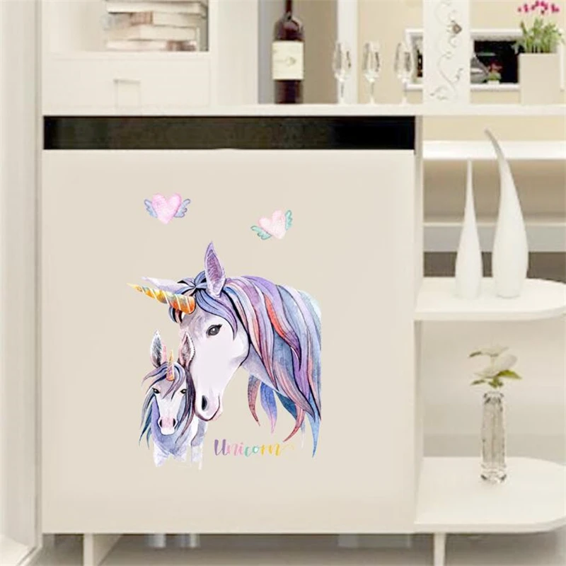 3D мультяшная Наклейка на стену в форме единорога настенная Фреска ...