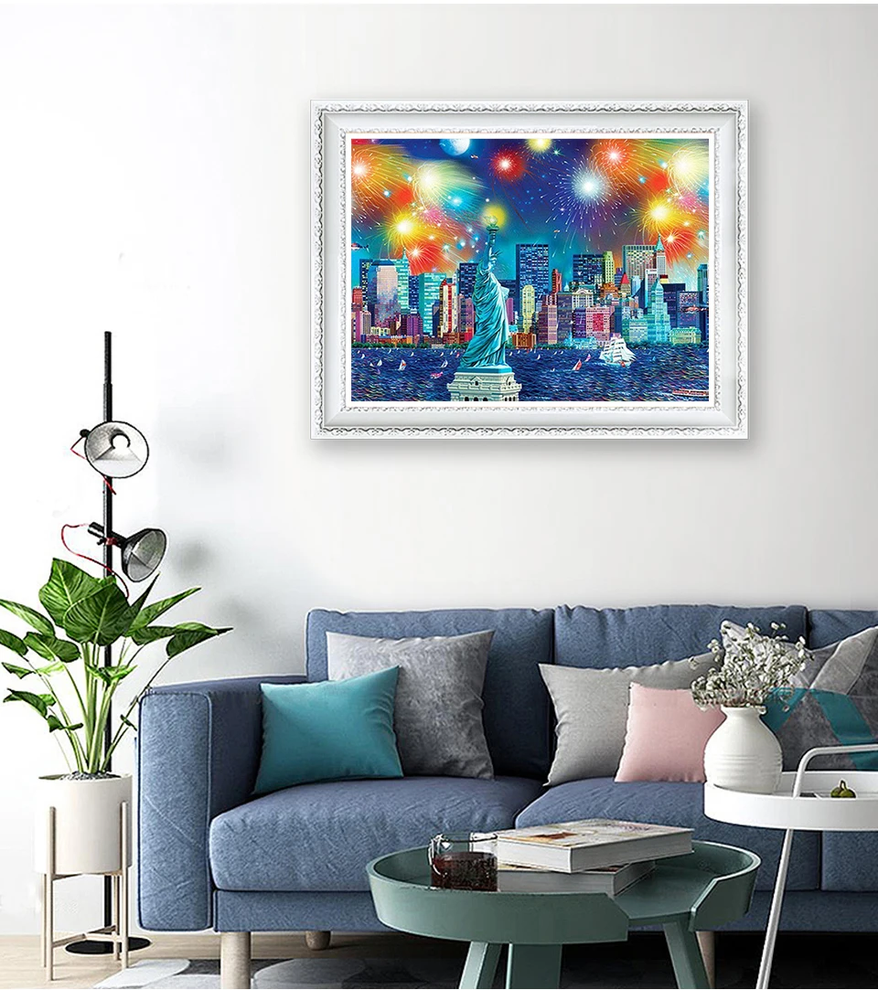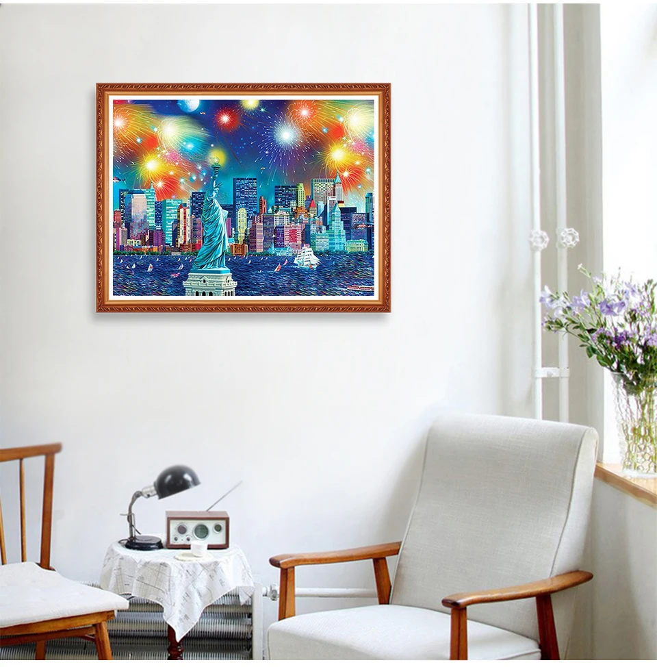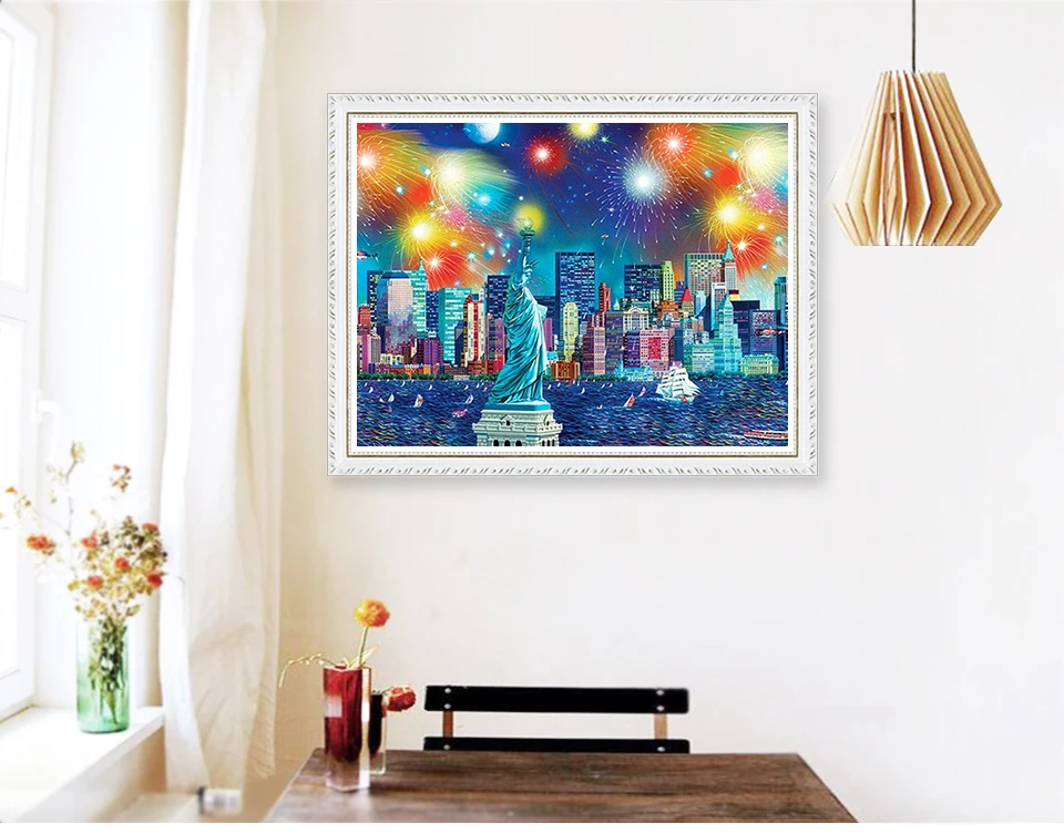 Алмазная вышивка Статуя Свободы, полностью круглая Алмазная картина, Настенная Наклейка стразы, мозаика из бисера, домашний декор