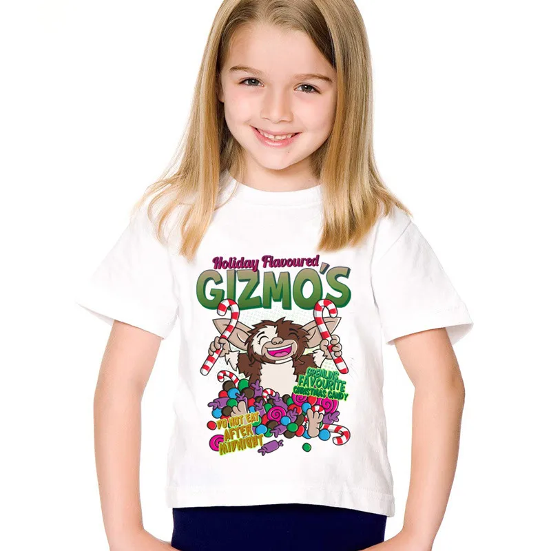 Детская одежда, футболки с графическим принтом Gremlins Gizmo, мультяшная футболка для девочек, летняя футболка для девочек, детская одежда для мальчиков