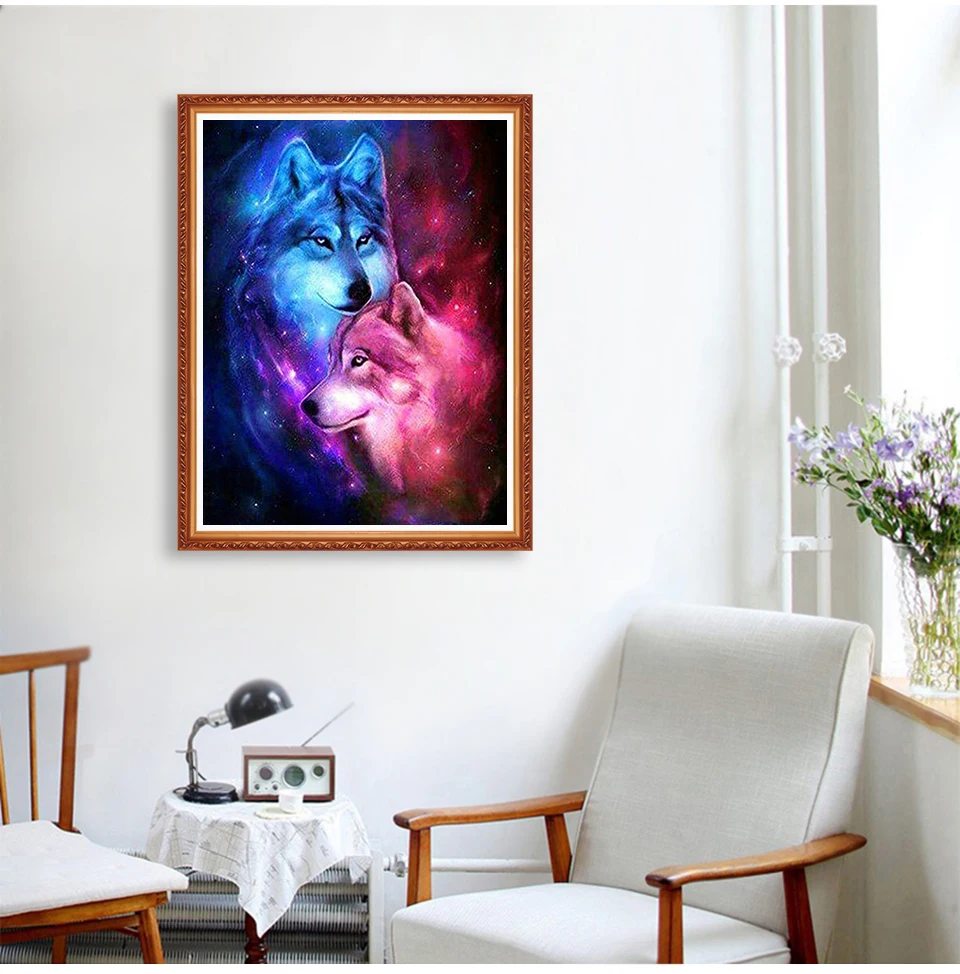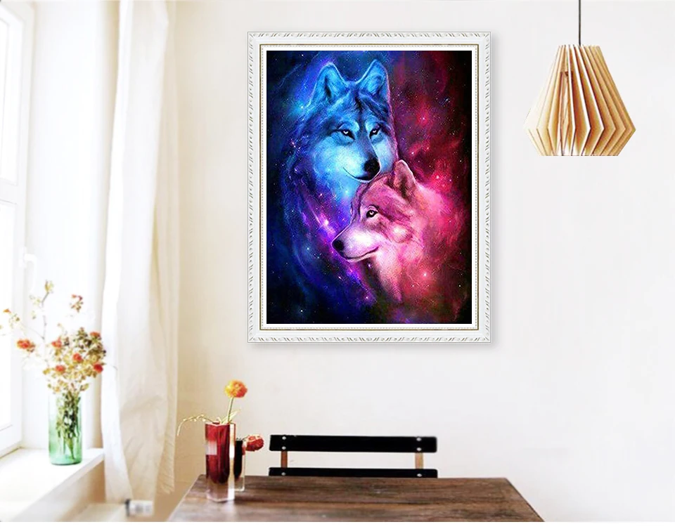 Алмазная вышивка волк, полностью круглая алмазная живопись, вышивка крестиком, животное, картина стразы, мозаика, домашний декор