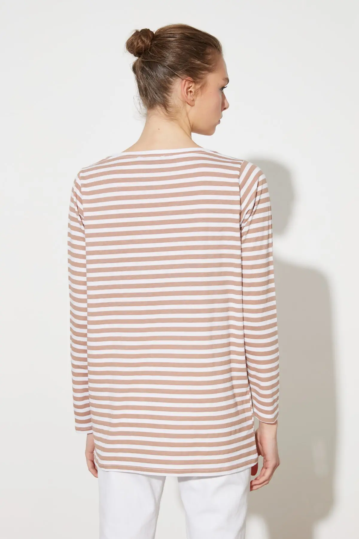 Удлиненная тельняшка. Почему-то я этого не заметила. На рост 158 почти как миниплатье. На распродаже обошлась рублей в 300. За такую цену довольна. Качество хорошее. Плотный хлопок