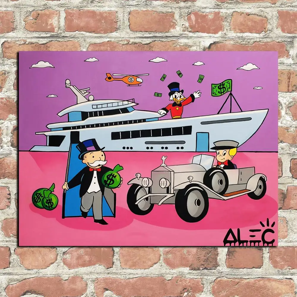 HD Печать Alec Монополия картина маслом домашний декор Монополия группа с яхтой и автомобилем холст печать декор комнаты