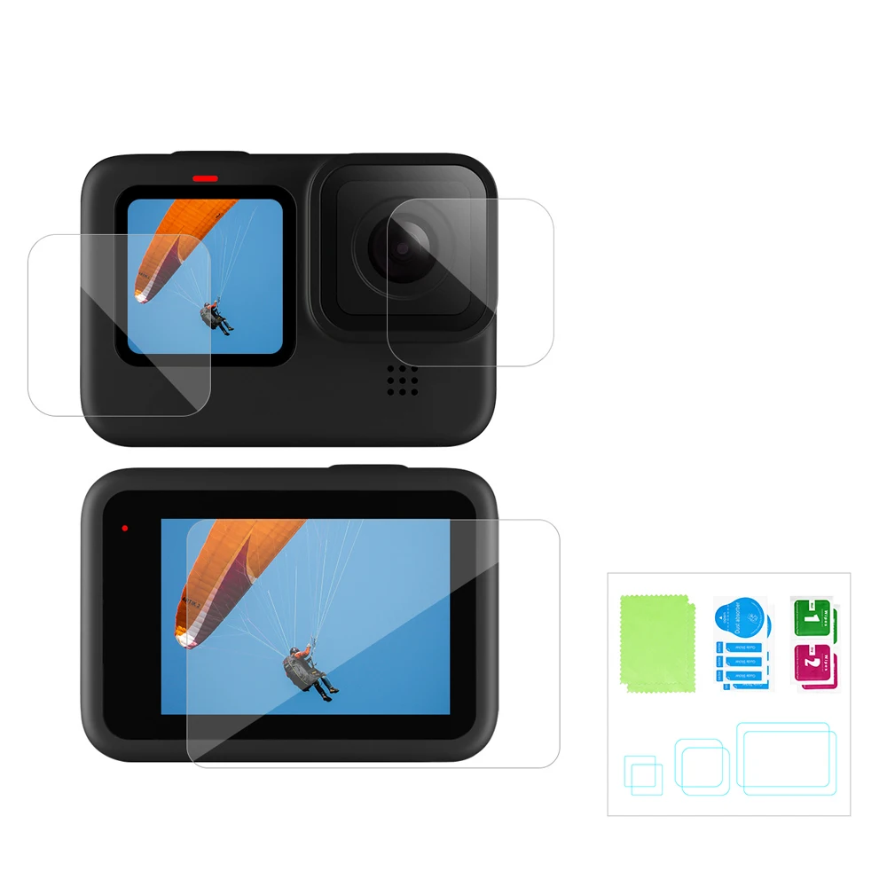 Для Gopro 9 10 черные аксессуары, защита экрана закаленное стекло Ультра Прозрачный ЖК HD + защита объектива 3 шт. Набор для Go Pro 10