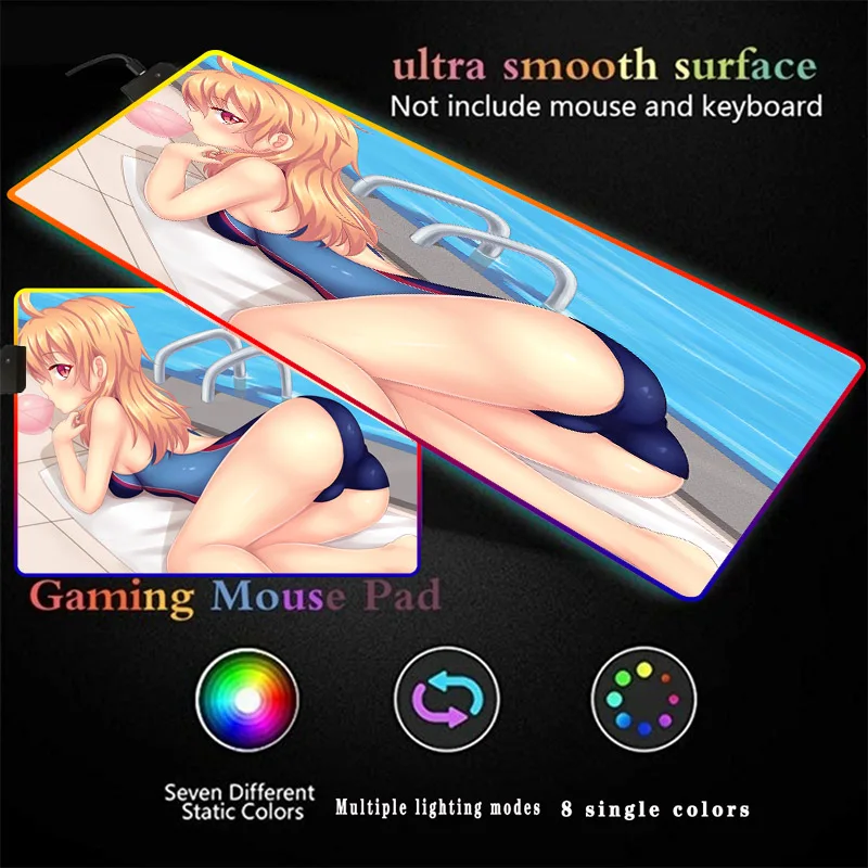 Большой игровой коврик для мыши с аниме бассейном и сексуальной девушкой RGB XXL, компьютерный коврик светодиодный Ной подсветкой, коврик для мыши, Настольный коврик для клавиатуры CSGO, коврик для ПК