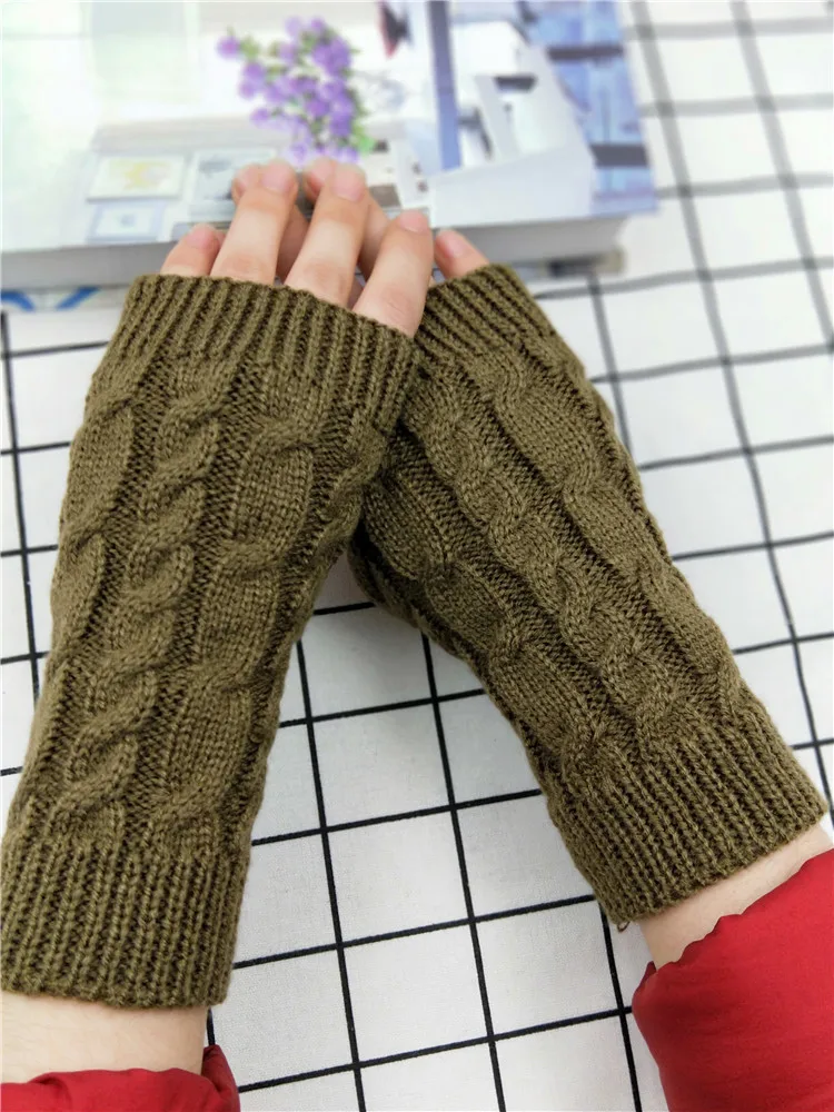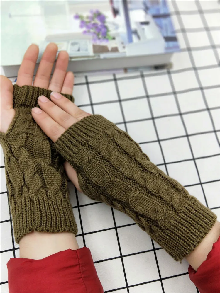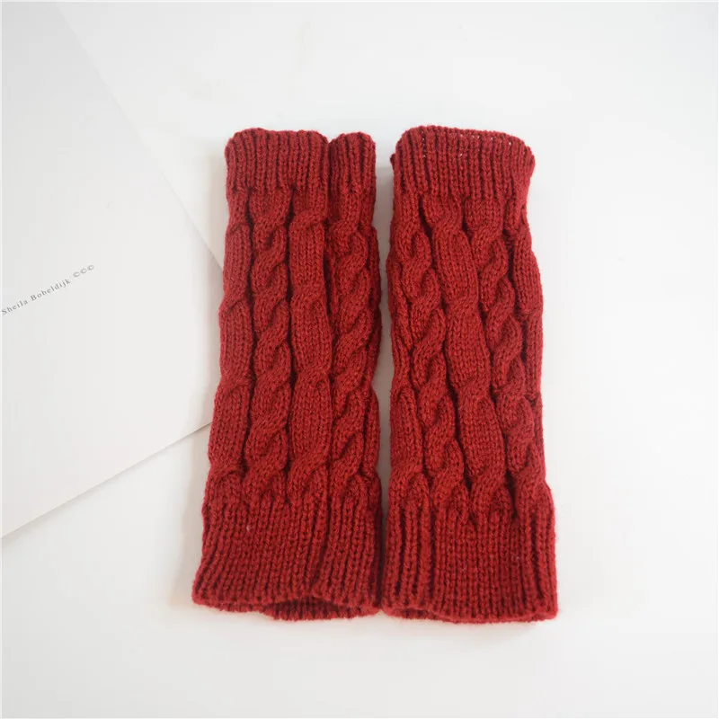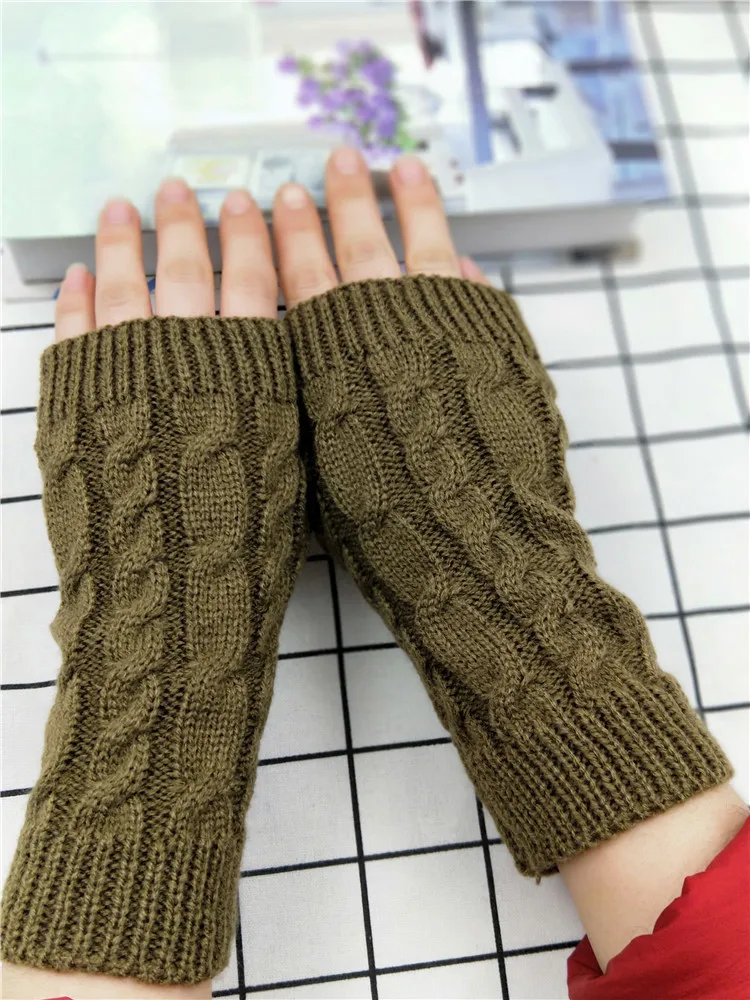 Вязаные перчатки без пальцев, зимние, теплые, однотонные