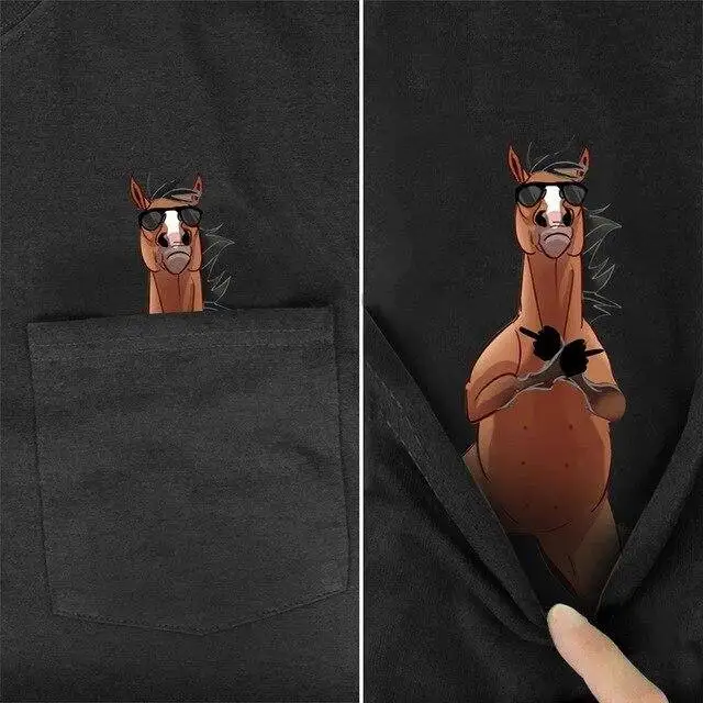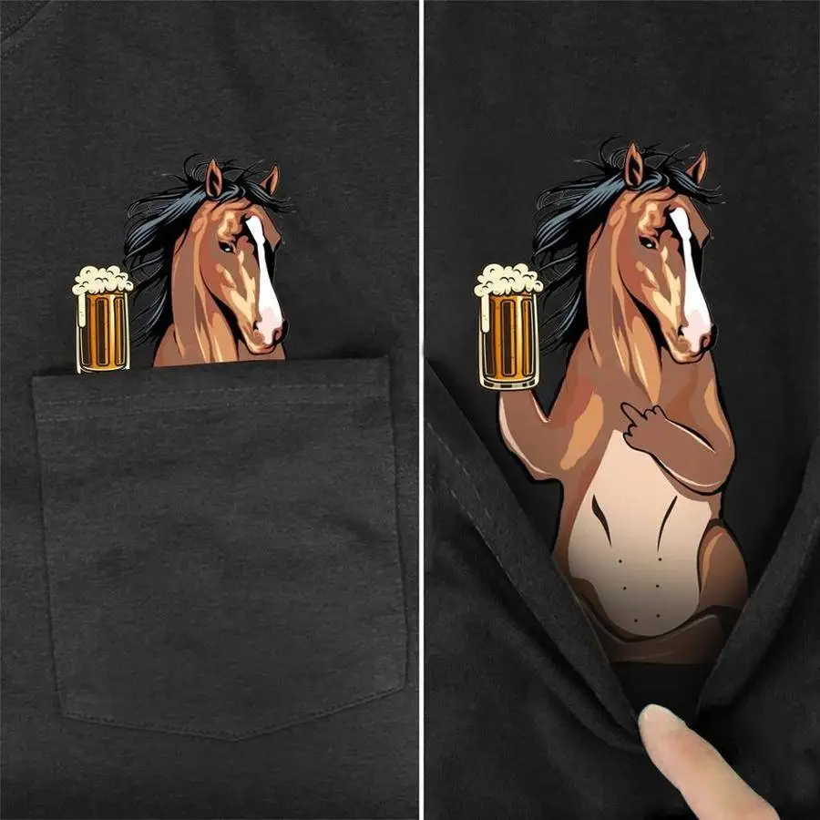 Футболка CLOOCL с карманами, летняя футболка с принтом пивной лошад...