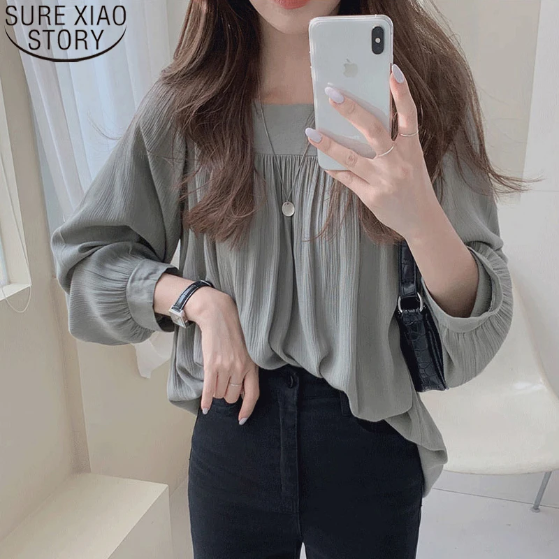 Новинка осени 2021, свободная рубашка с длинным рукавом, женская шифоновая рубашка, женские топы, одежда с квадратным воротником, блузки, блузки 11696