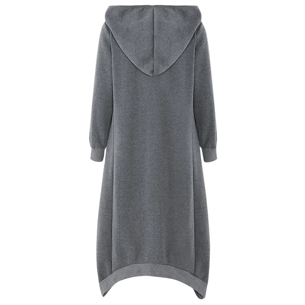 Женский однотонный свитшот с длинным рукавом, уличная одежда для женщин, пуловер на молнии с капюшоном, топы, женский длинный Тренч, зима 2020