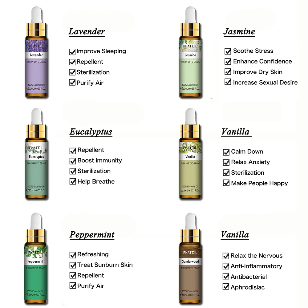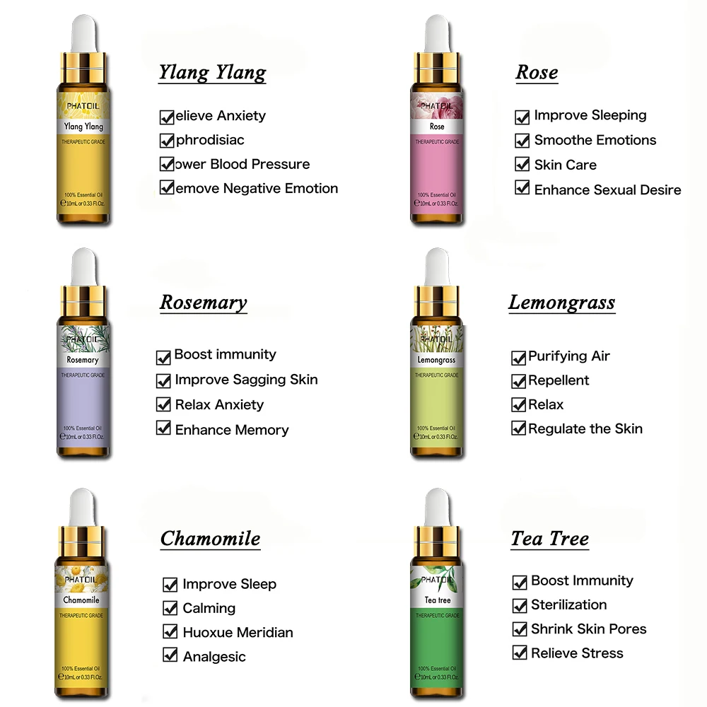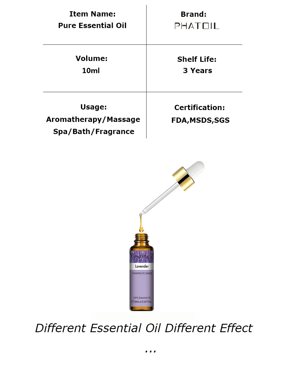 Эфирное масло лаванды PHATOIL, диффузор 10 мл, чистые натуральные эфирные масла, мята, лемонграсса, лимон, чай, дерево, противомоскитное масло