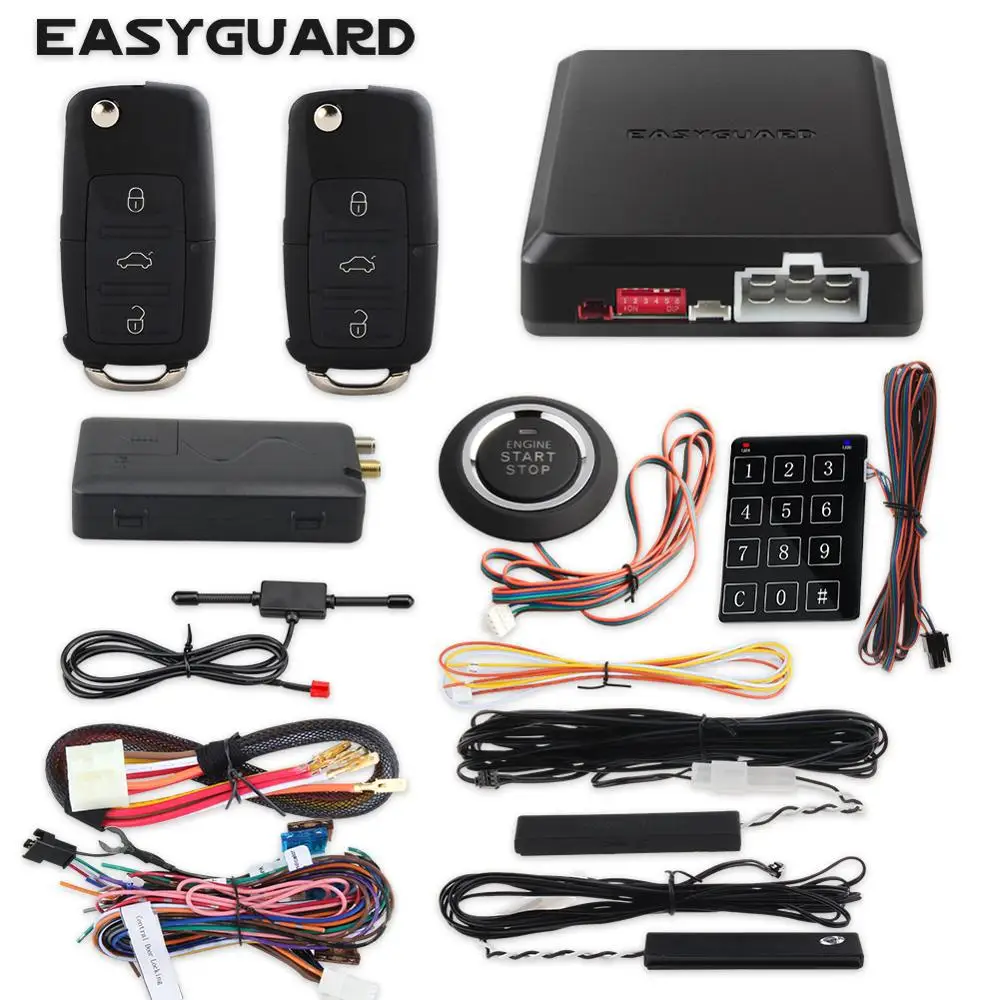 Это EASYGUARD PKE Автомобильная сигнализация с gps-отслеживанием, пассивным входом без ключа, дистанционным запуском, пуском, сенсорный ввод пароля. Этот товар может управляться смартфонами IOS и Android.