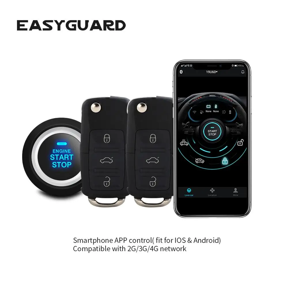 EASYGUARD GSM GPS телефон IOS Android 4G 3G 2G бесключевая система входа двигатель старт стоп Удаленный Двигатель старт GPS сигнализация Система DC12V