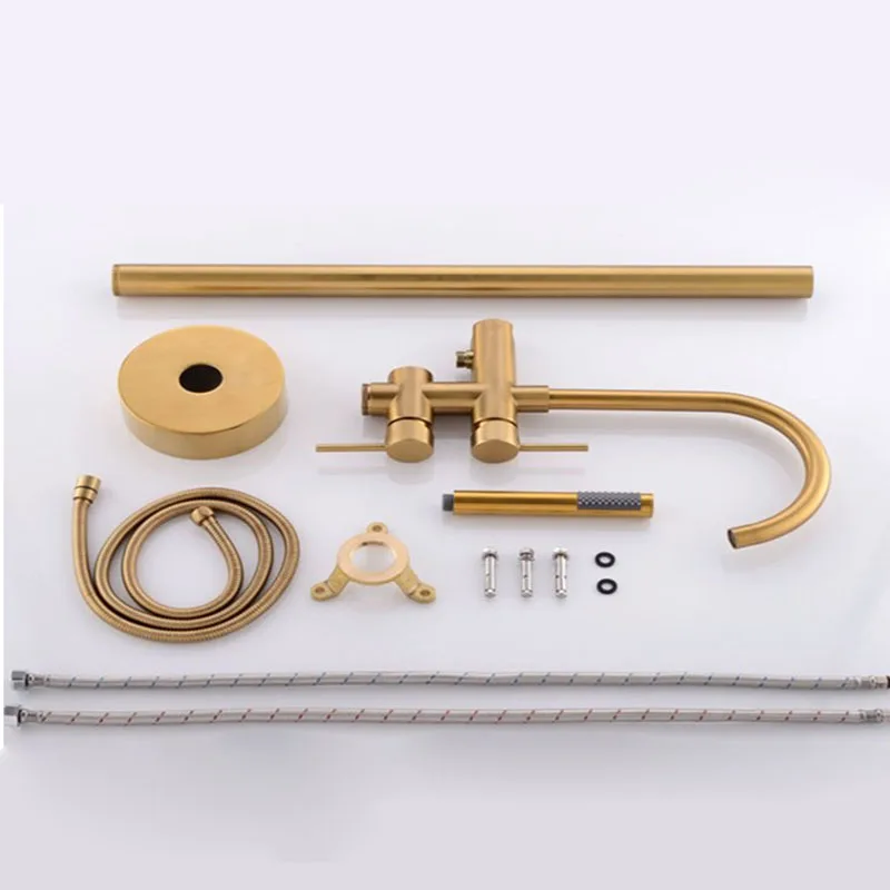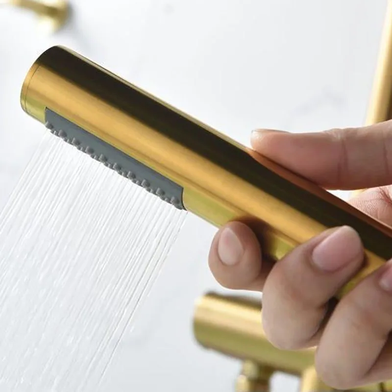Золотой кран для ванной комнаты, современный кран для ванной с ручной душевой кран горячей и холодной воды, напольная Ванна