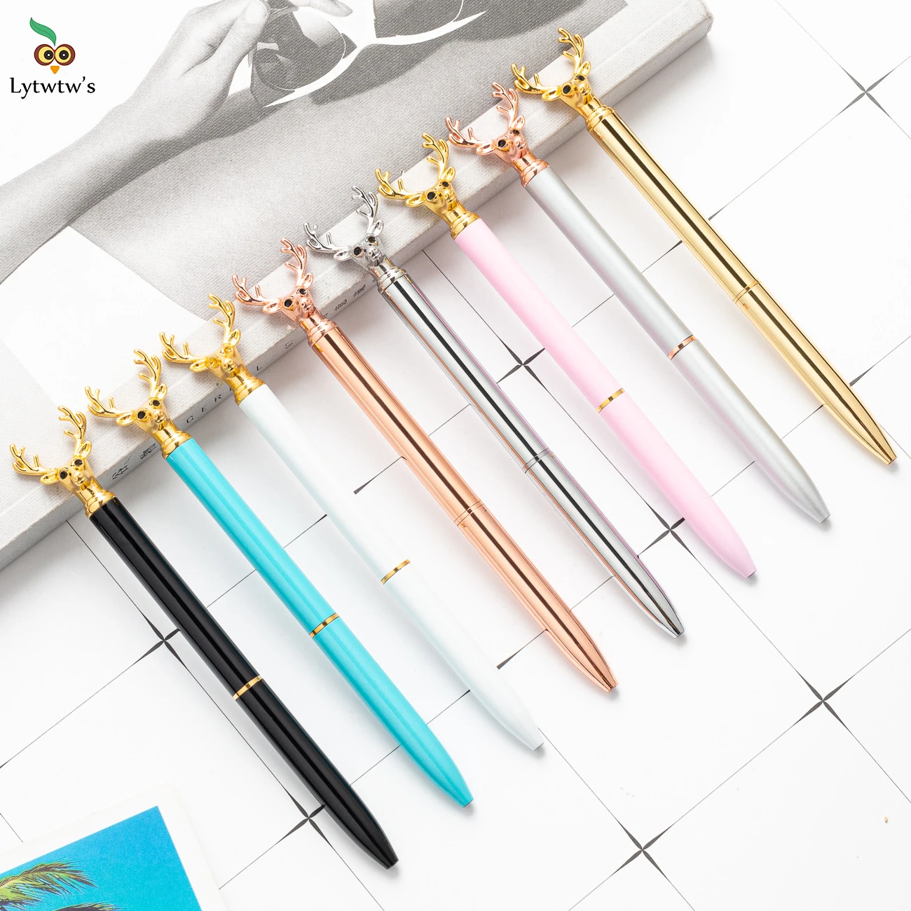 Шариковая ручка Lytwtw с головой оленя, металлическая, вращающаяся, 1 шт.