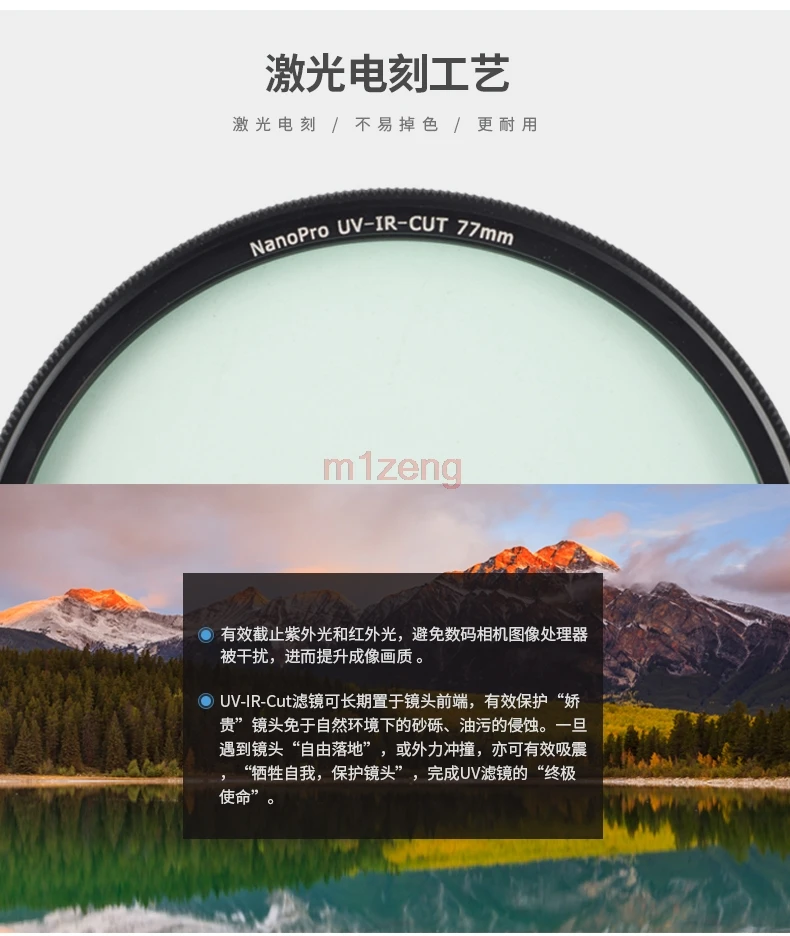 Фильтр для объектива NanoPro uv-ir-Cut 390-750nm mc инфракрасный k9 для камеры 52 55 58 62 67 72 77 82 Canon nikon sony pentax fuji olympus