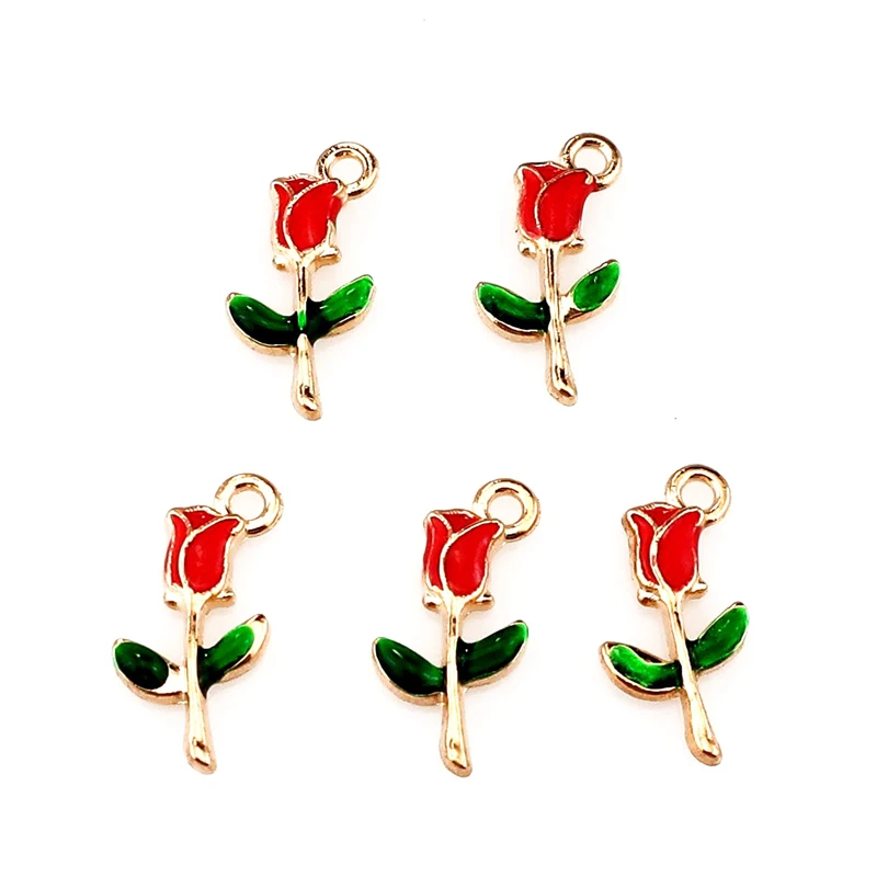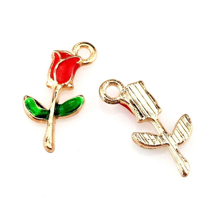 Брелок с эмалью в виде романтического цветка розы для женщин, подвеска для изготовления ювелирных изделий, подарок на день Святого Валентина, 20 шт.лот