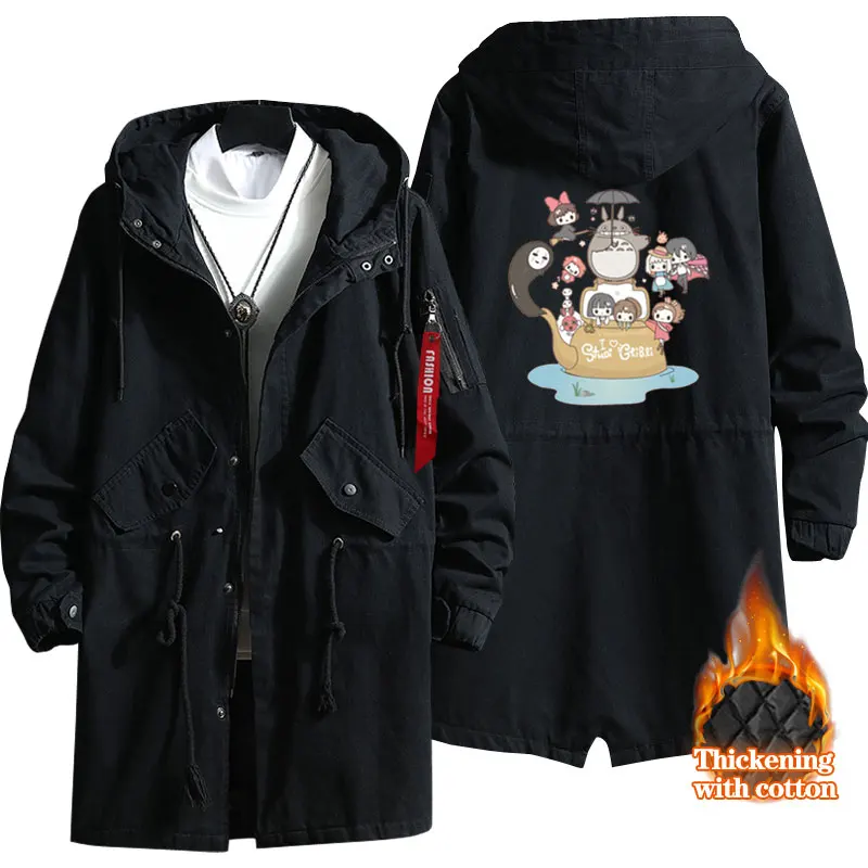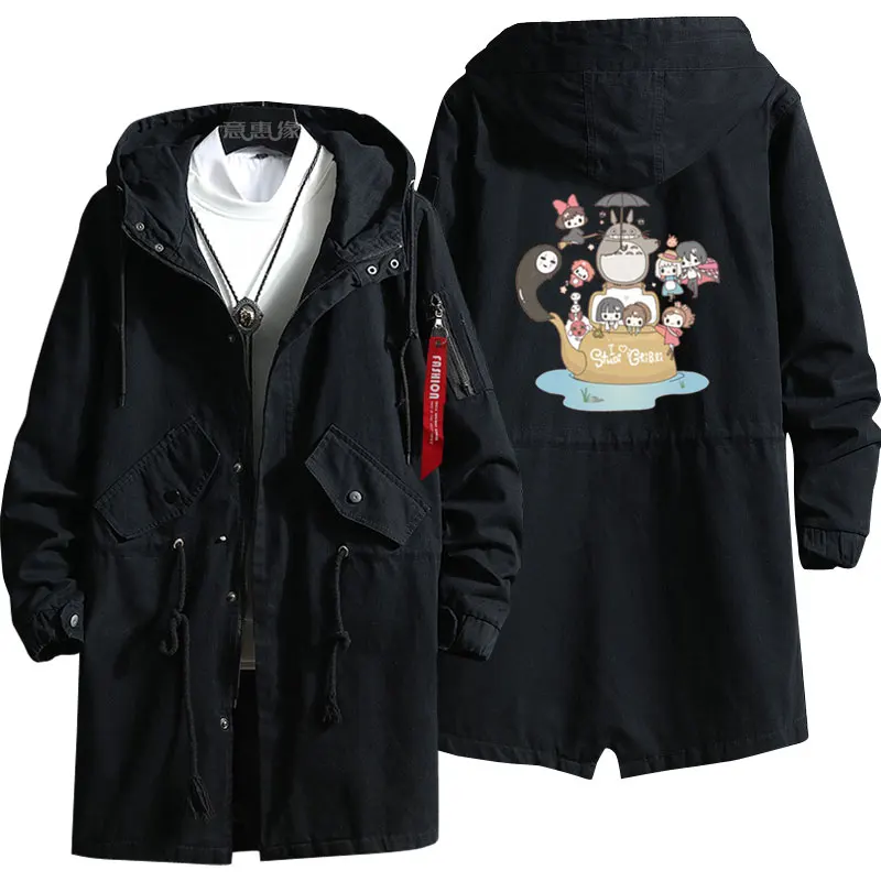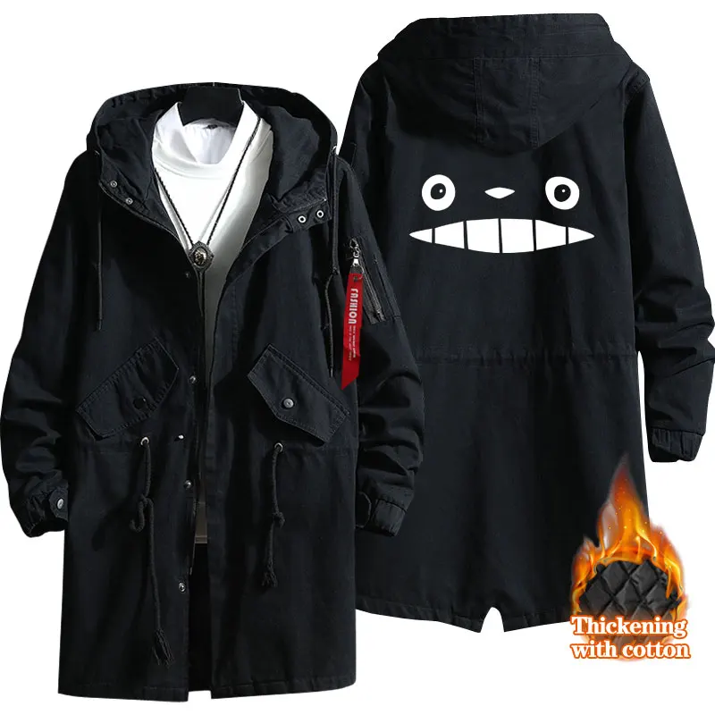 Новинка, толстовка с капюшоном и рисунком из мультфильма «Тоторо», мужской Тренч в стиле аниме, Мужская модная хлопковая куртка на молнии