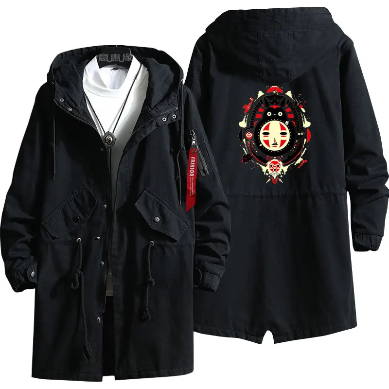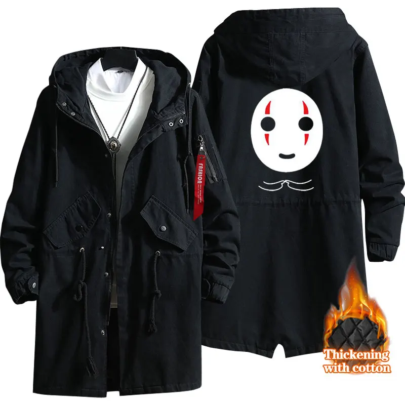 Новинка Толстовка Chihiro с изображением животных Тоторо без лица Мужской тренчкот аниме модное мужское хлопковое пальто на молнии куртка