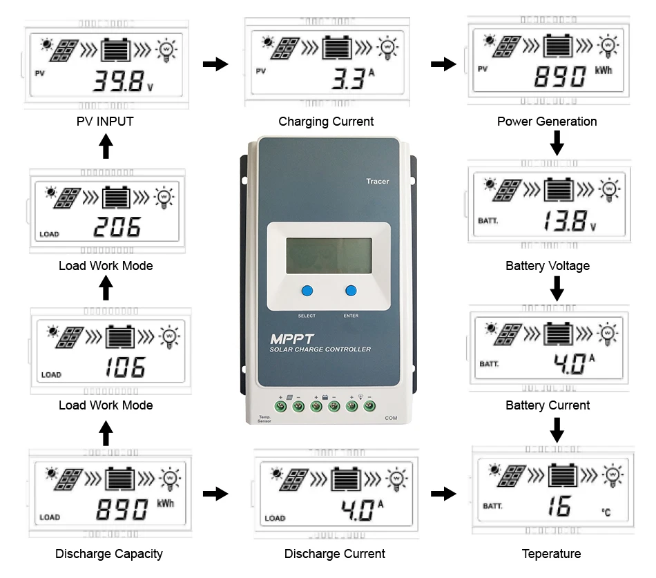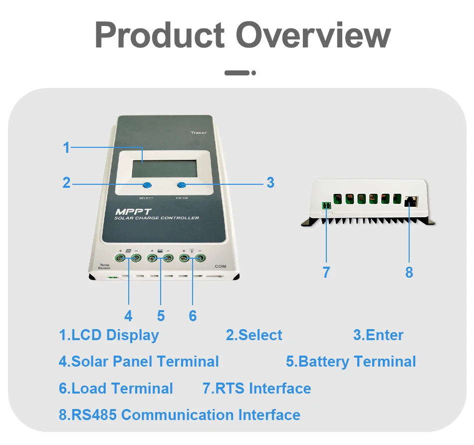 Серия Tracer A. На основе общего отрицательного дизайна и усовершенствованного алгоритма управления MPPT, с ЖК-дисплеем, отображающим состояние работы, этот продукт является художественным, экономичным и практичным. Улучшенный алгоритм управления MPPT, отслеживающий ряд может минимизировать максимальную скорость потери точки питания и время потери, быстро Отслеживайте максимальную точку мощности PV Массива и получайте максимальную энергию от солнечных модулей при любых условиях; И может увеличить коэффициент использования энергии в Солнечной системе на 10%-30% по сравнению с методом зарядки PWM. Функция ограничения мощности зарядки и тока и функция редукционной зарядки автоматически улучшает стабильность, которая работает даже при подключении больших pv-модулей и высокой температуре, а также увеличивает профессиональный чип защиты для порта связи, дальнейшее повышение надежности и соответствие различным требованиям к применению.