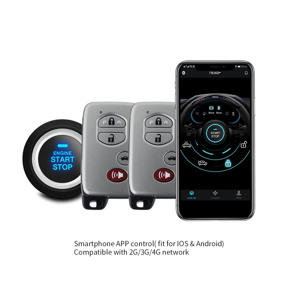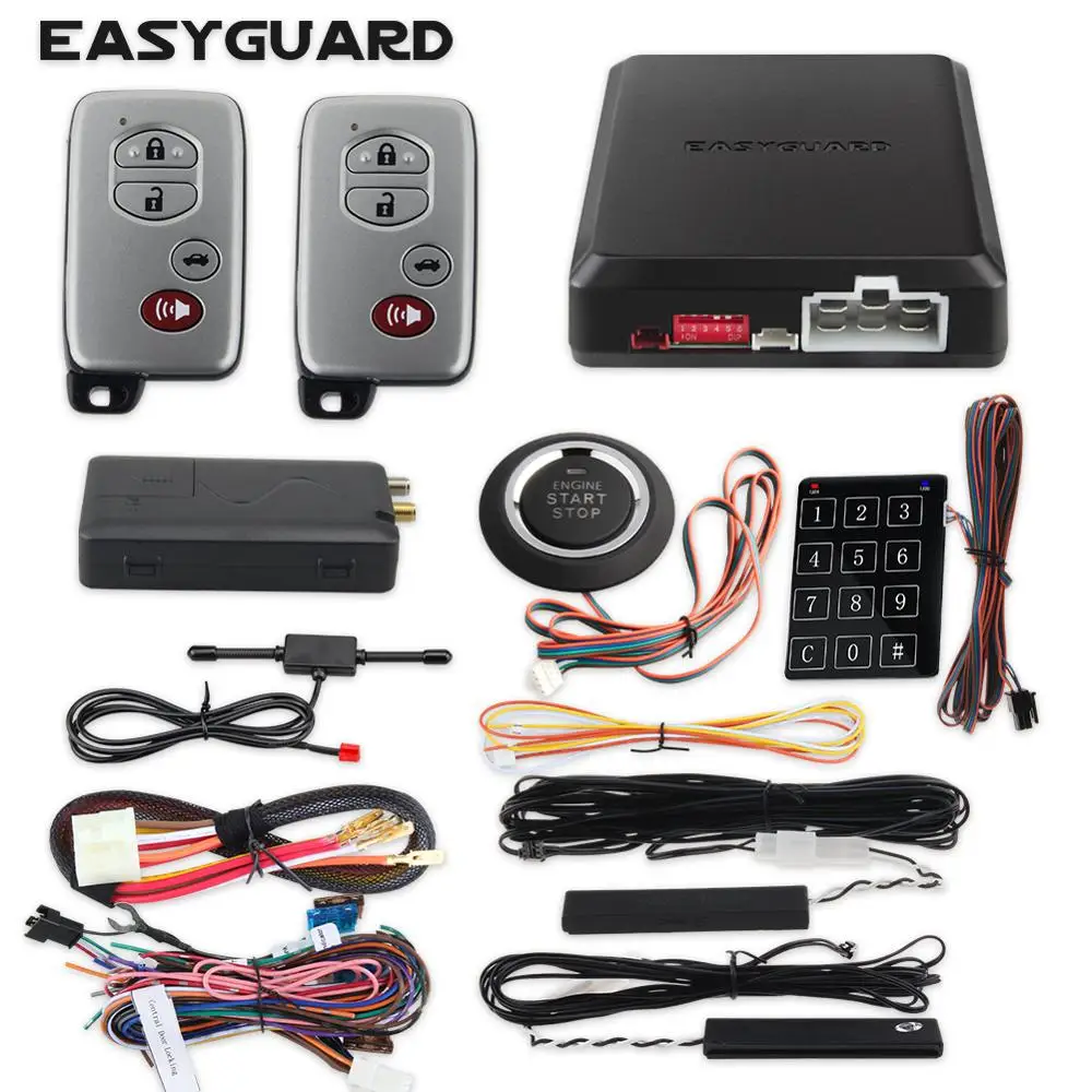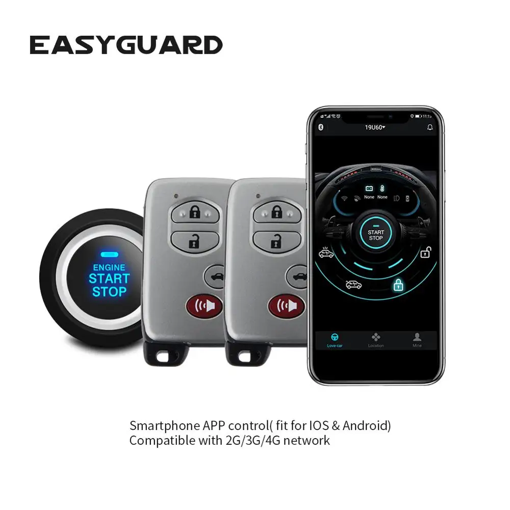 Это EASYGUARD PKE Автомобильная сигнализация с gps-отслеживанием, пассивным входом без ключа, дистанционным запуском, пуском, сенсорный ввод пароля. Этот товар может управляться смартфонами IOS и Android.